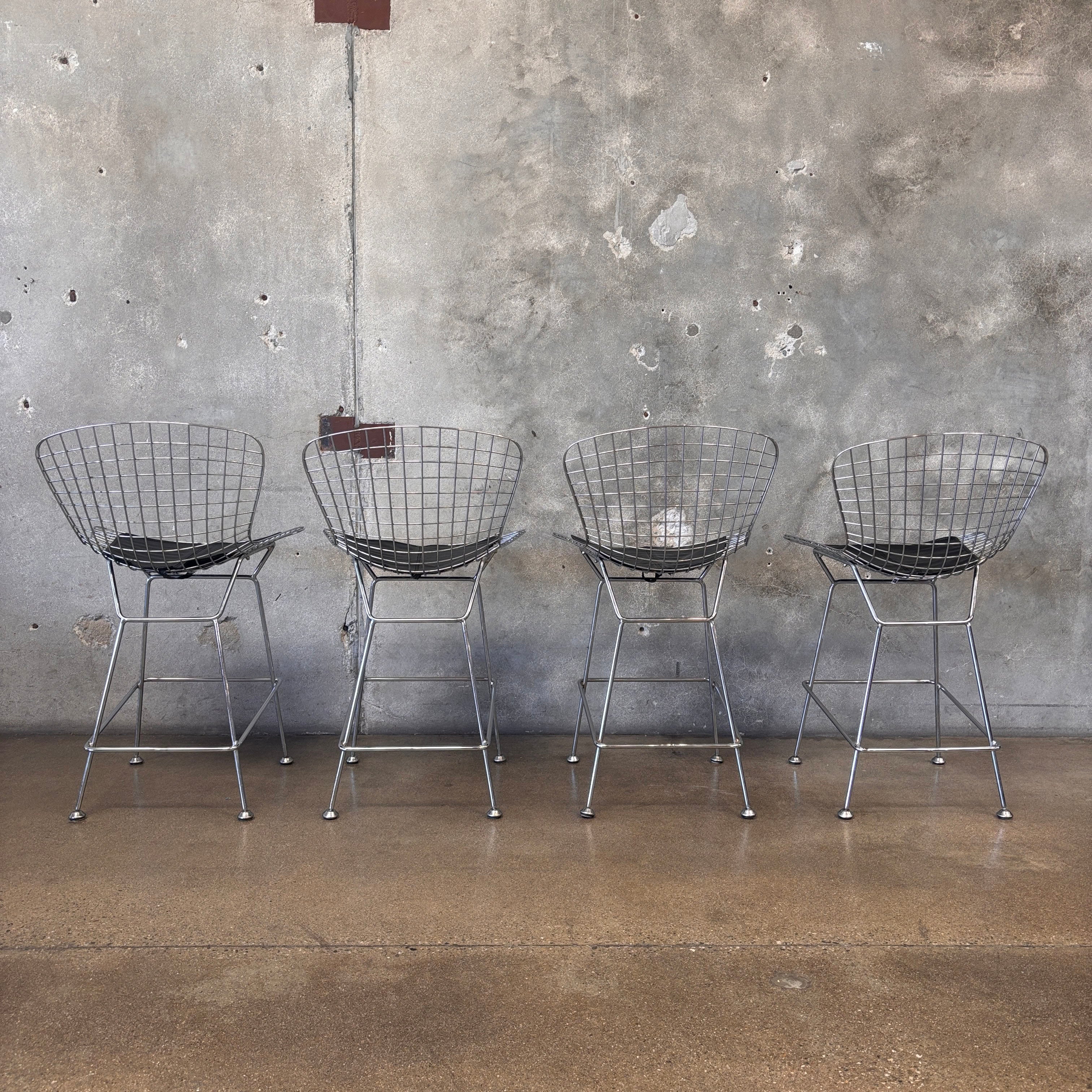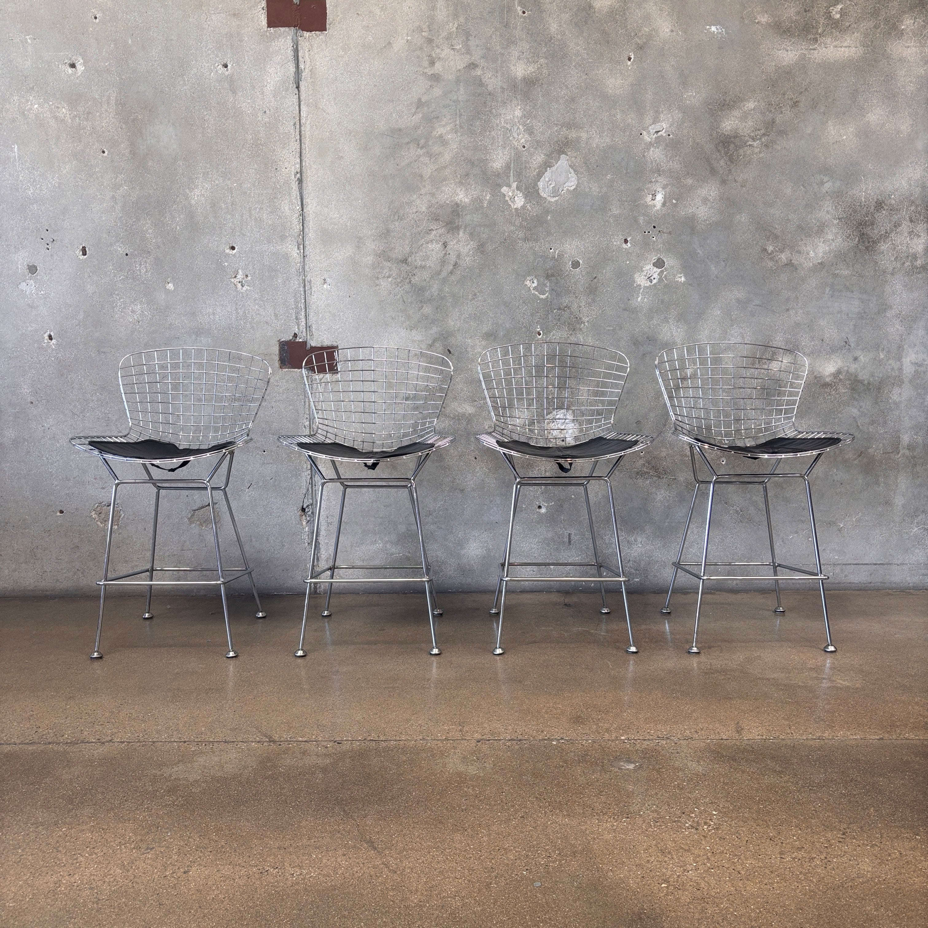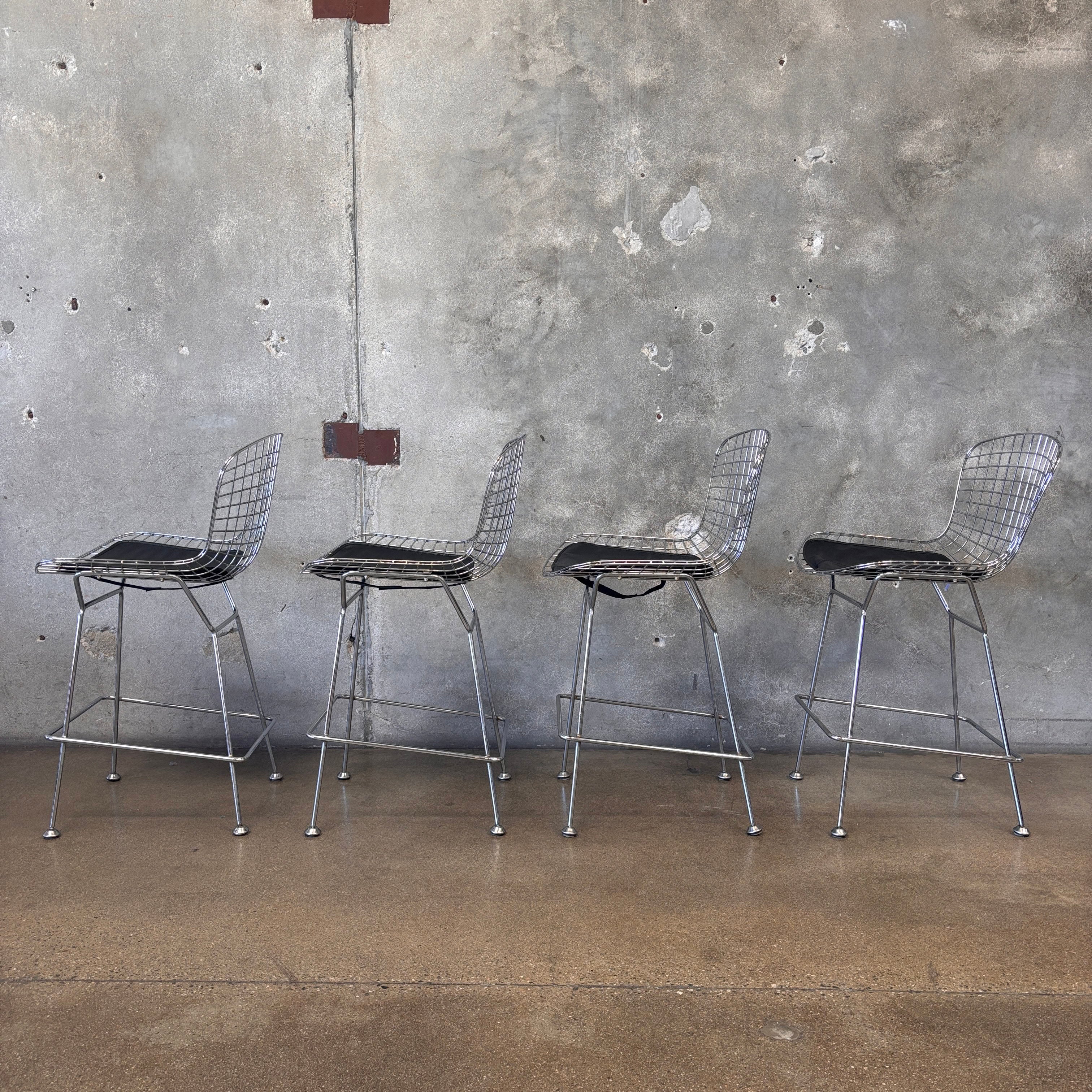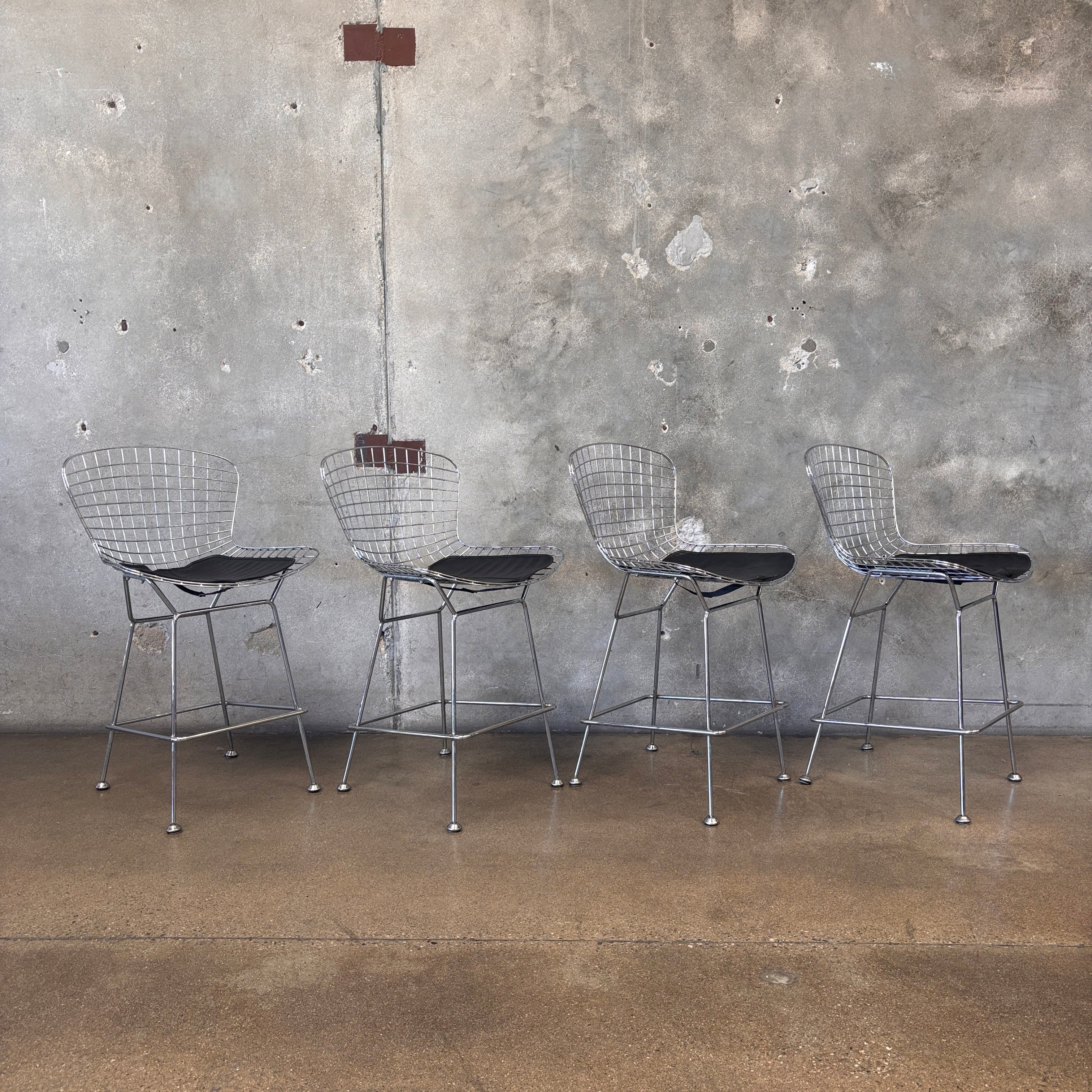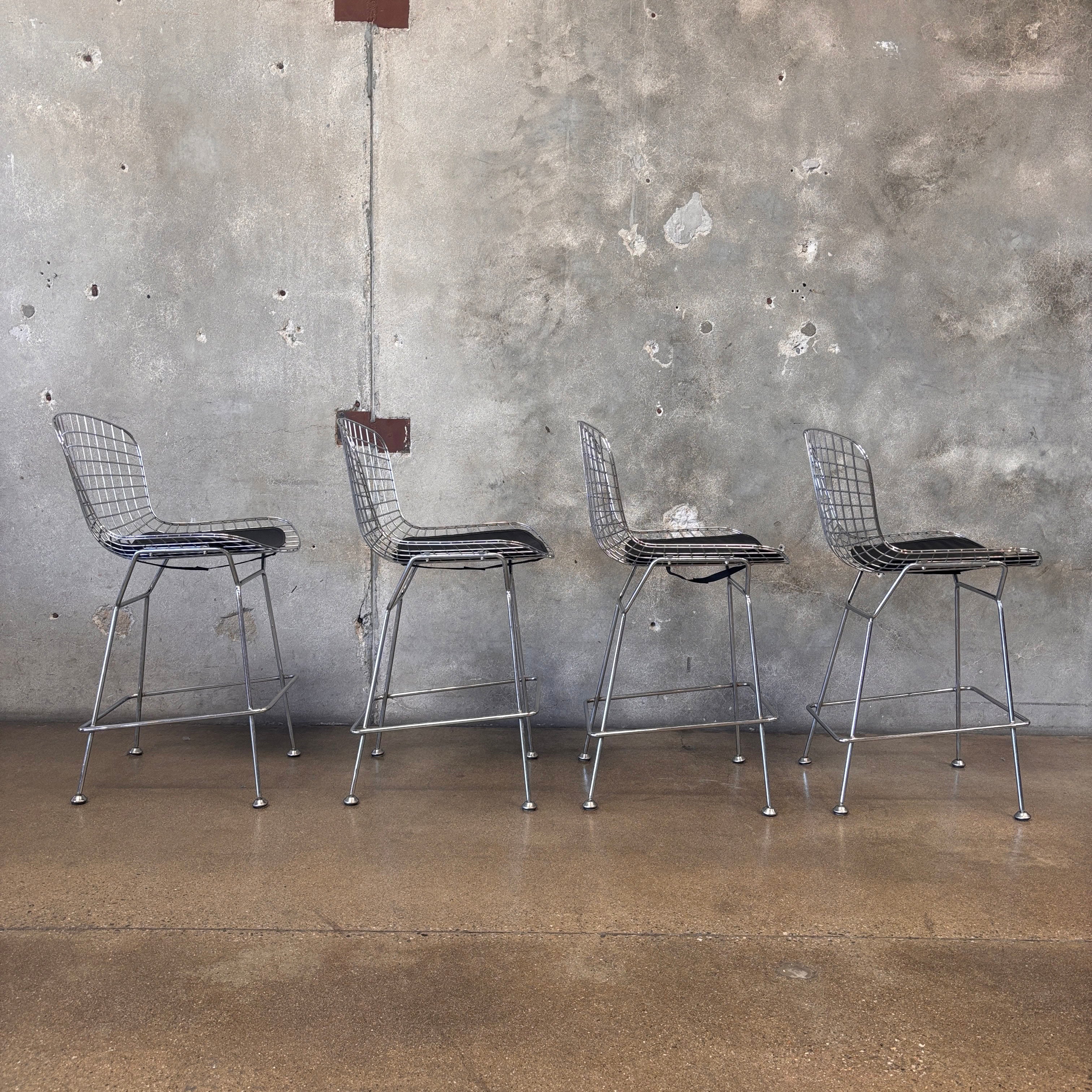 Set of Four Reproduction Harry Bertoia Chrome Wired Barstools