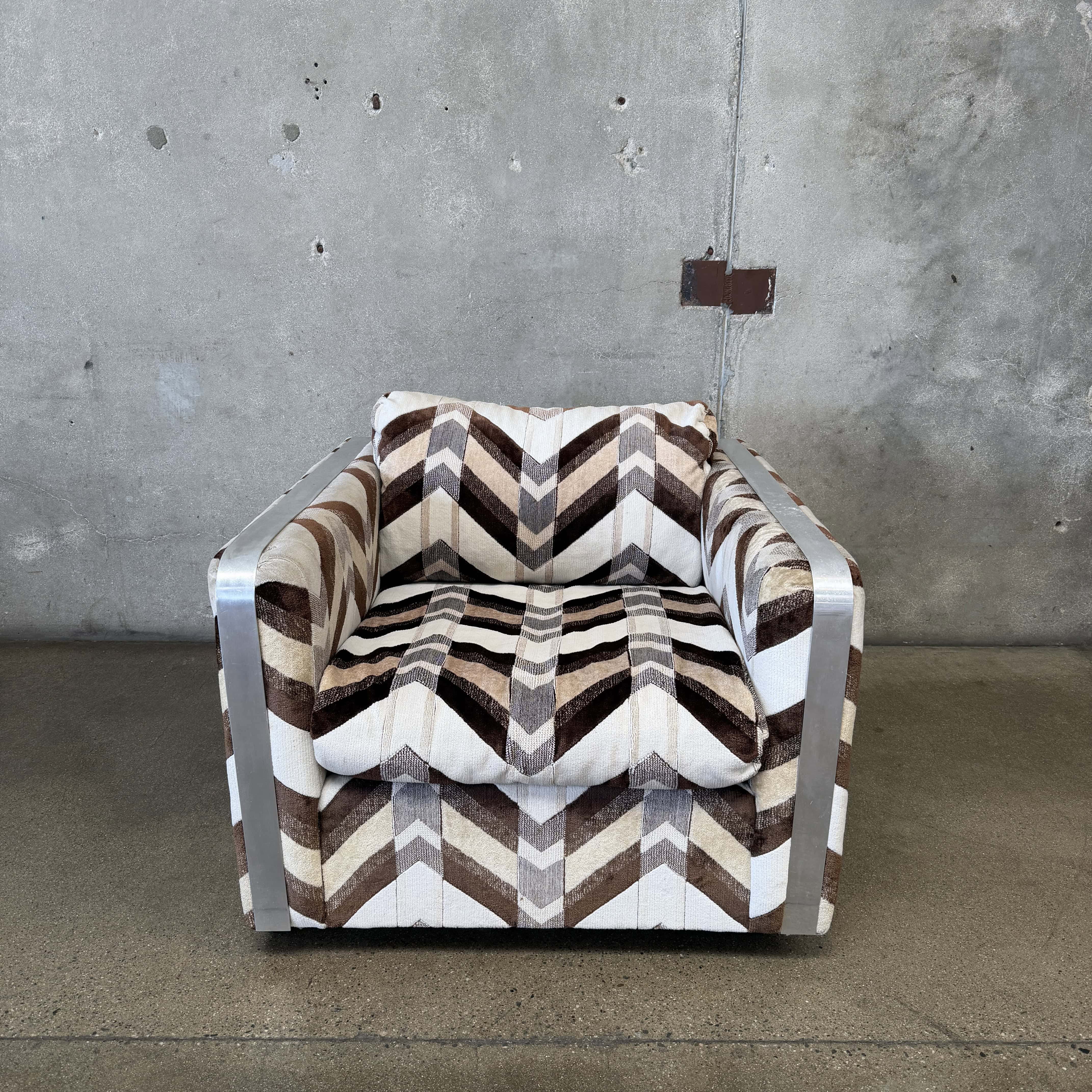 1970's Armchair In The Style of Milo Baughman w/Original Jack Lenor Larsen Upholstery