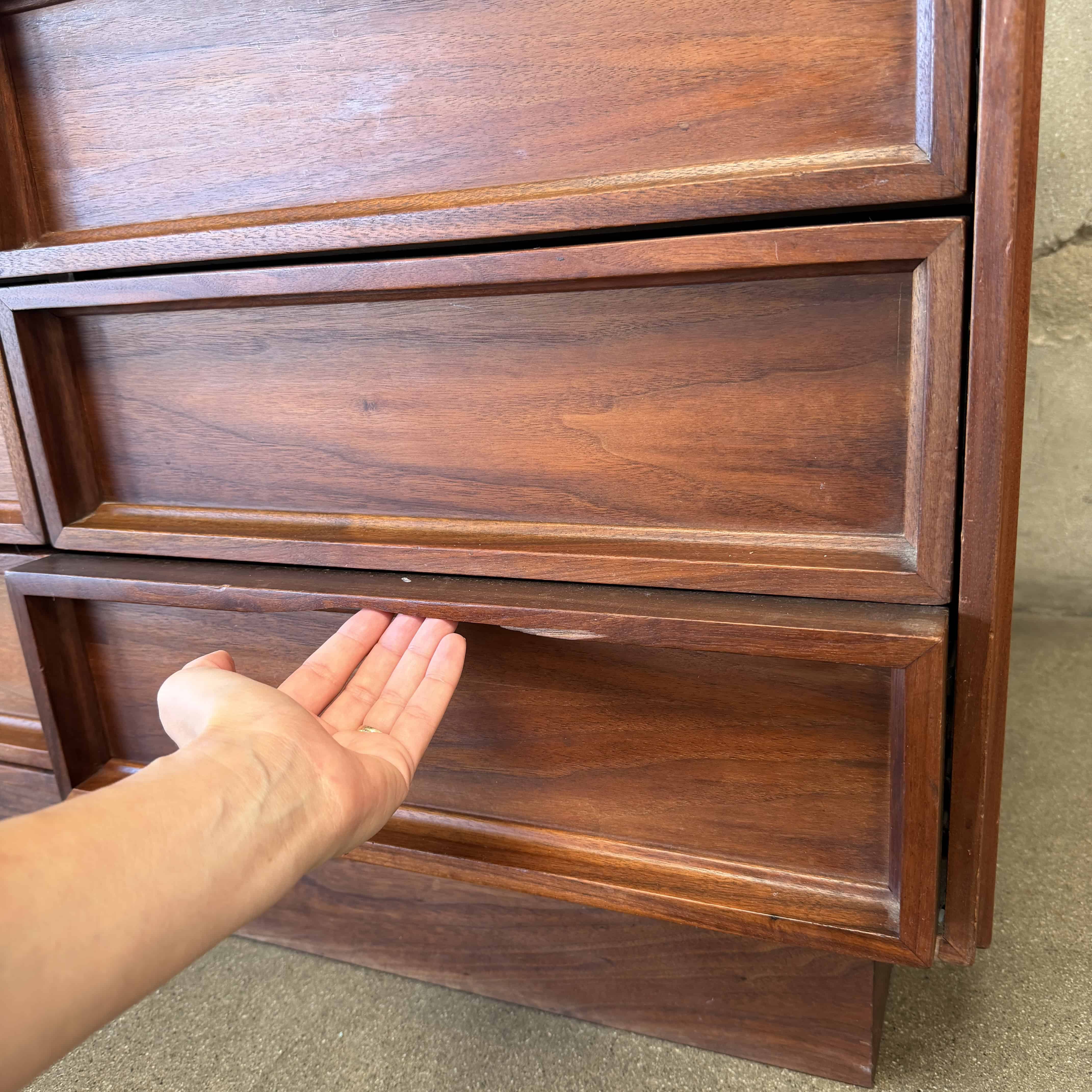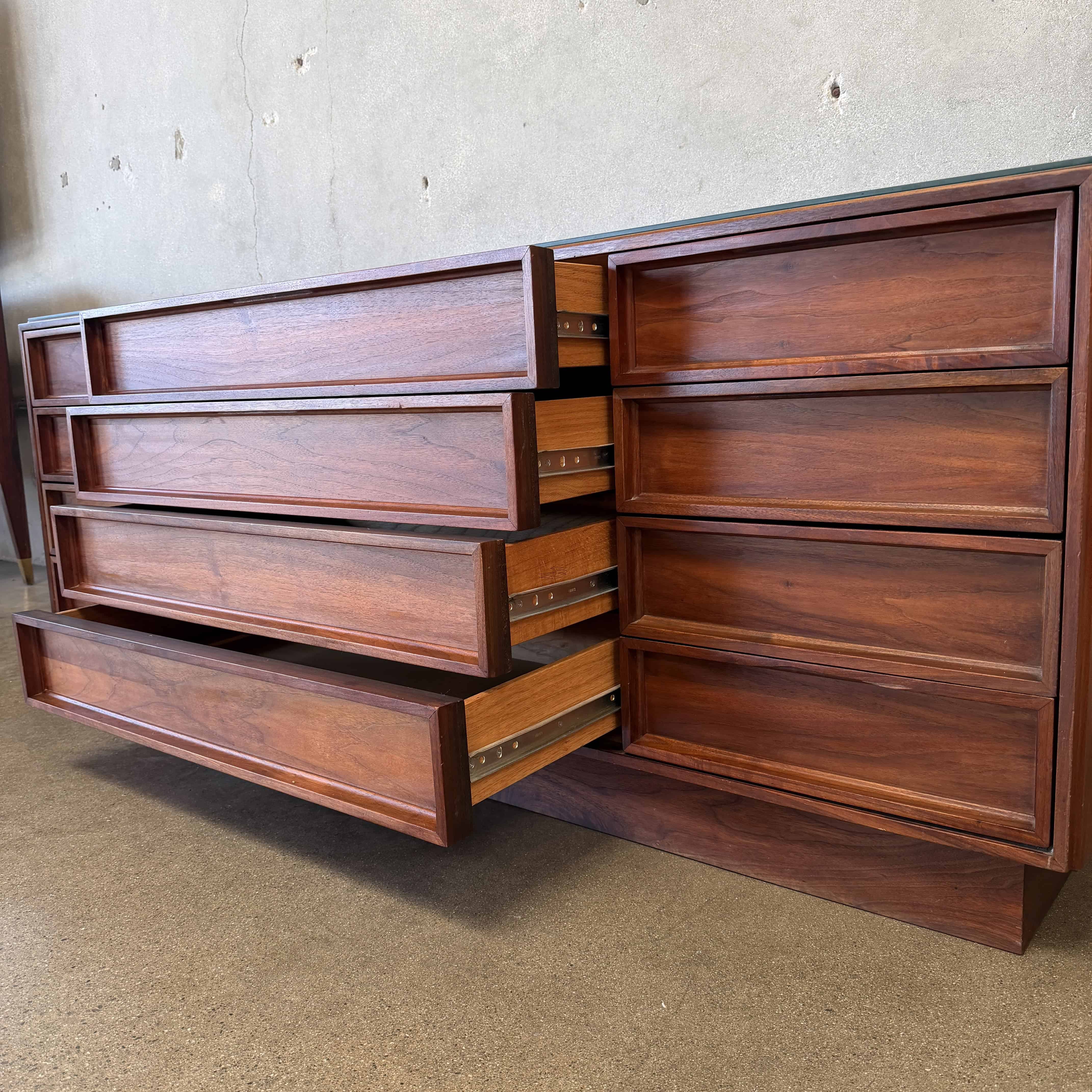 John Keal for Brown Saltman 12 Drawer Lowboy - Walnut (As is Condition Glass Topper)