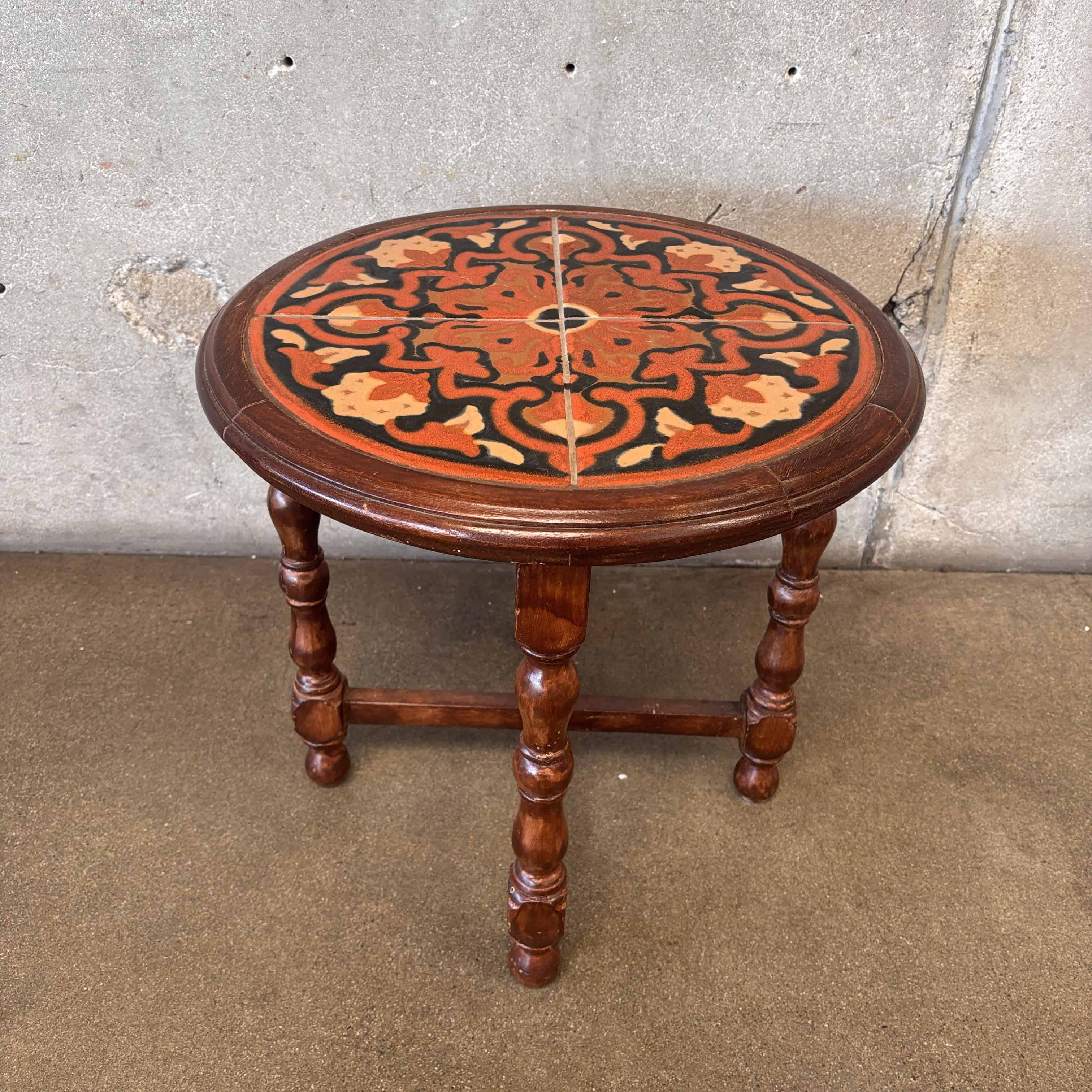 1930's California Four Tile Table By Taylor Round Tile Comp Tiles