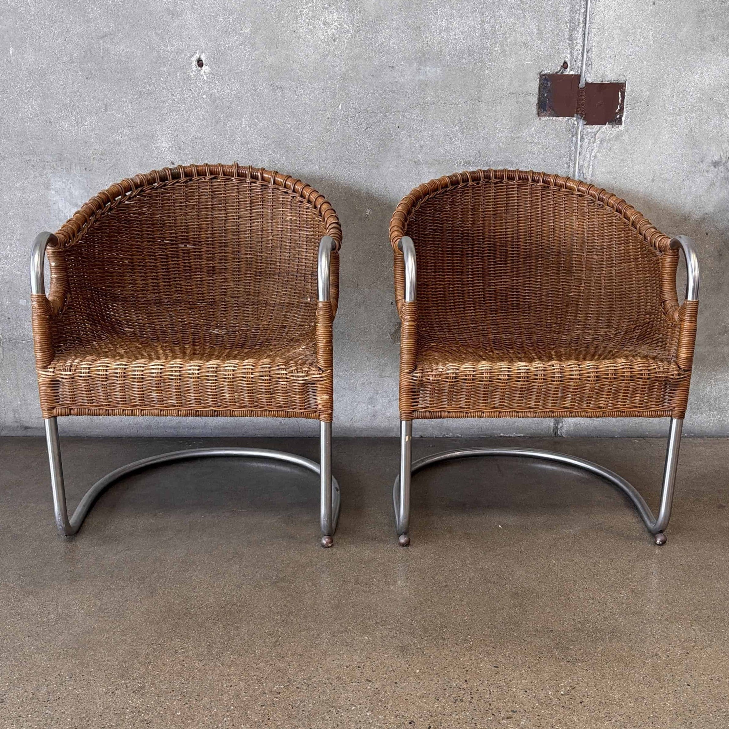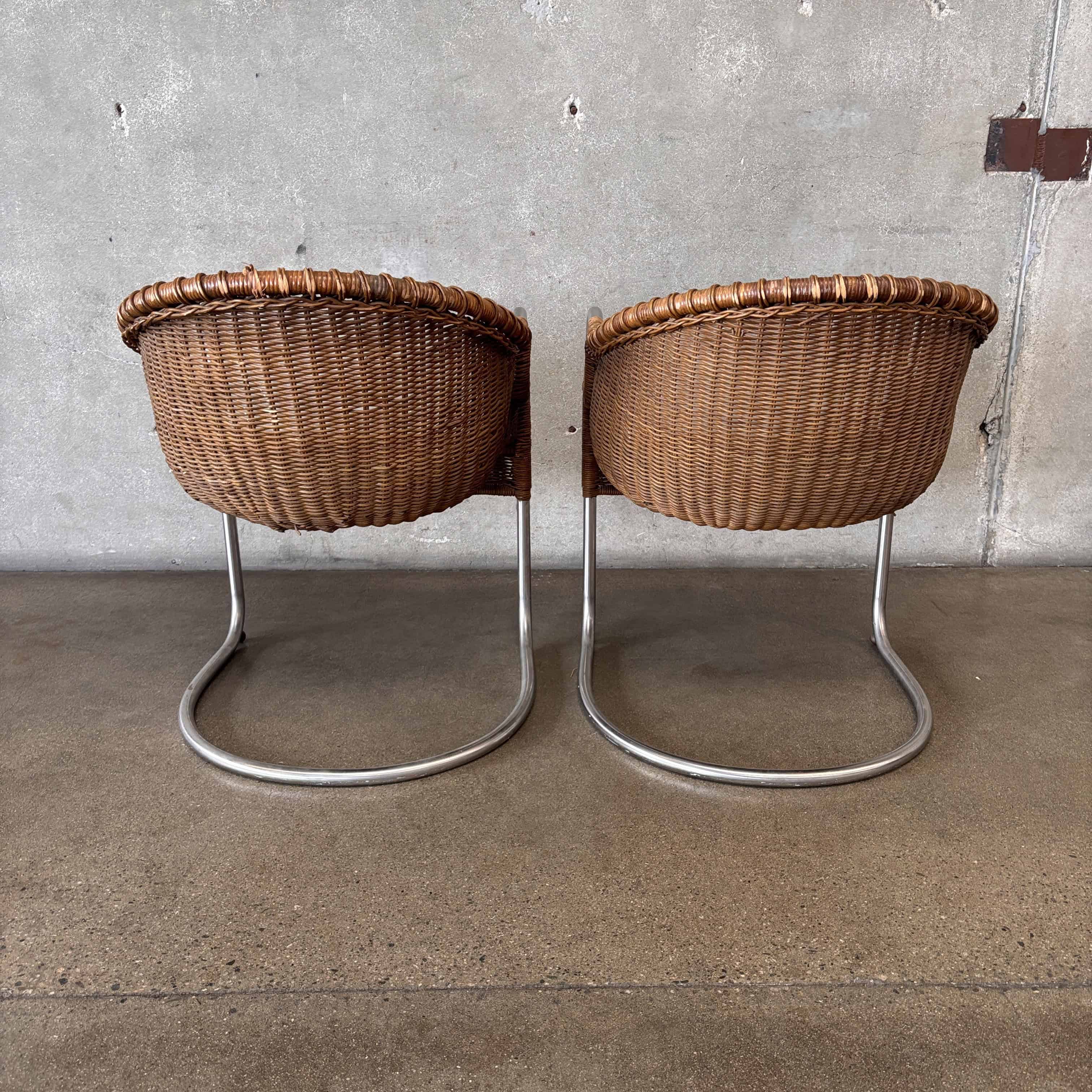 Vintage 1950s Pair of Chrome & Wicker Chairs by Harvey Probber