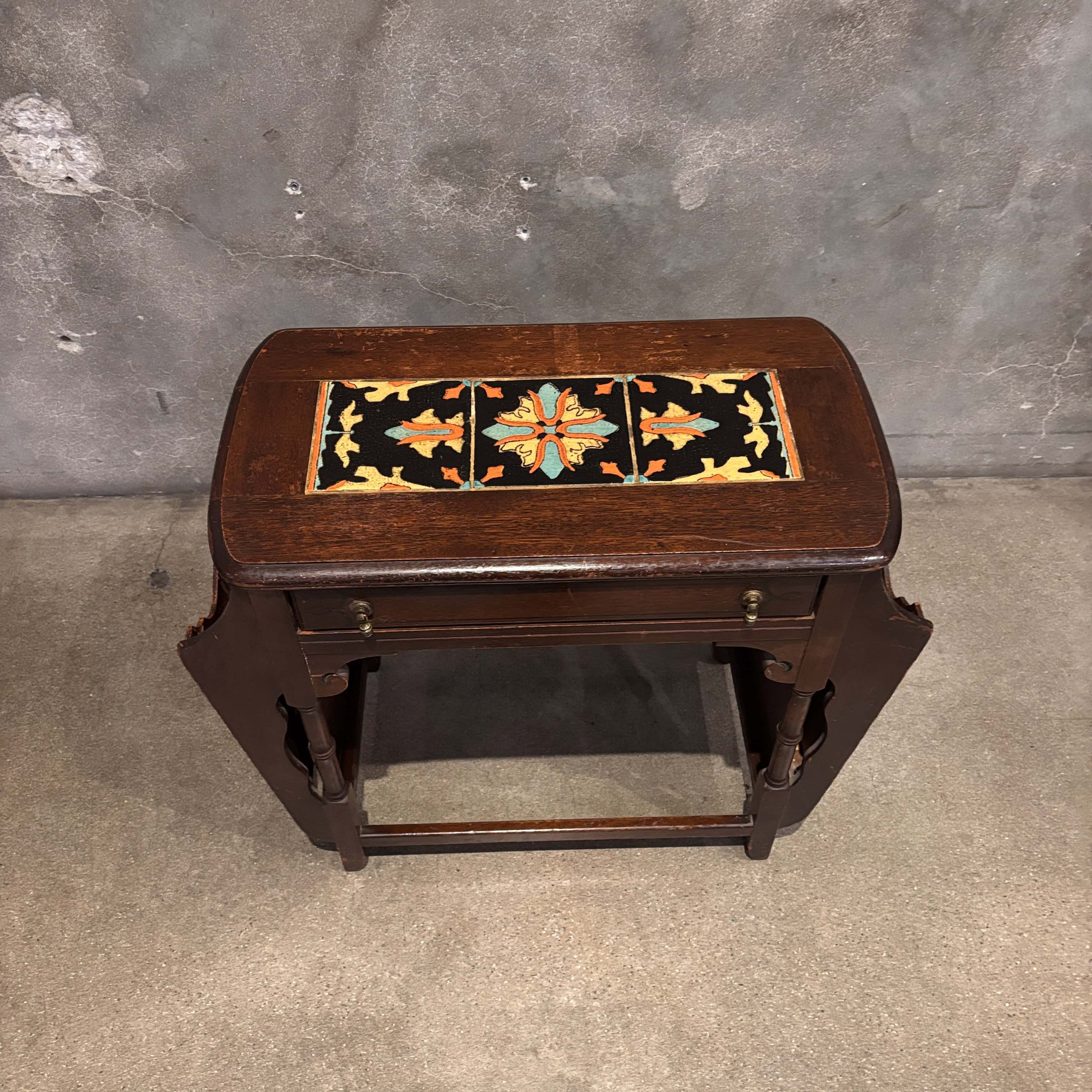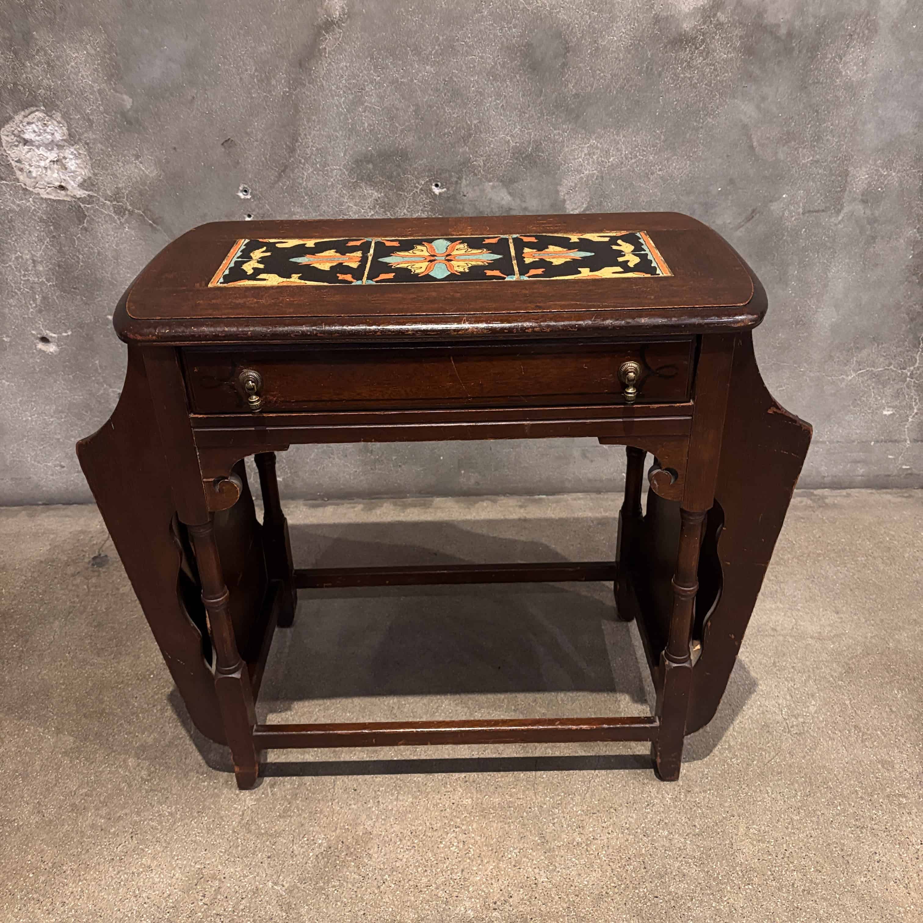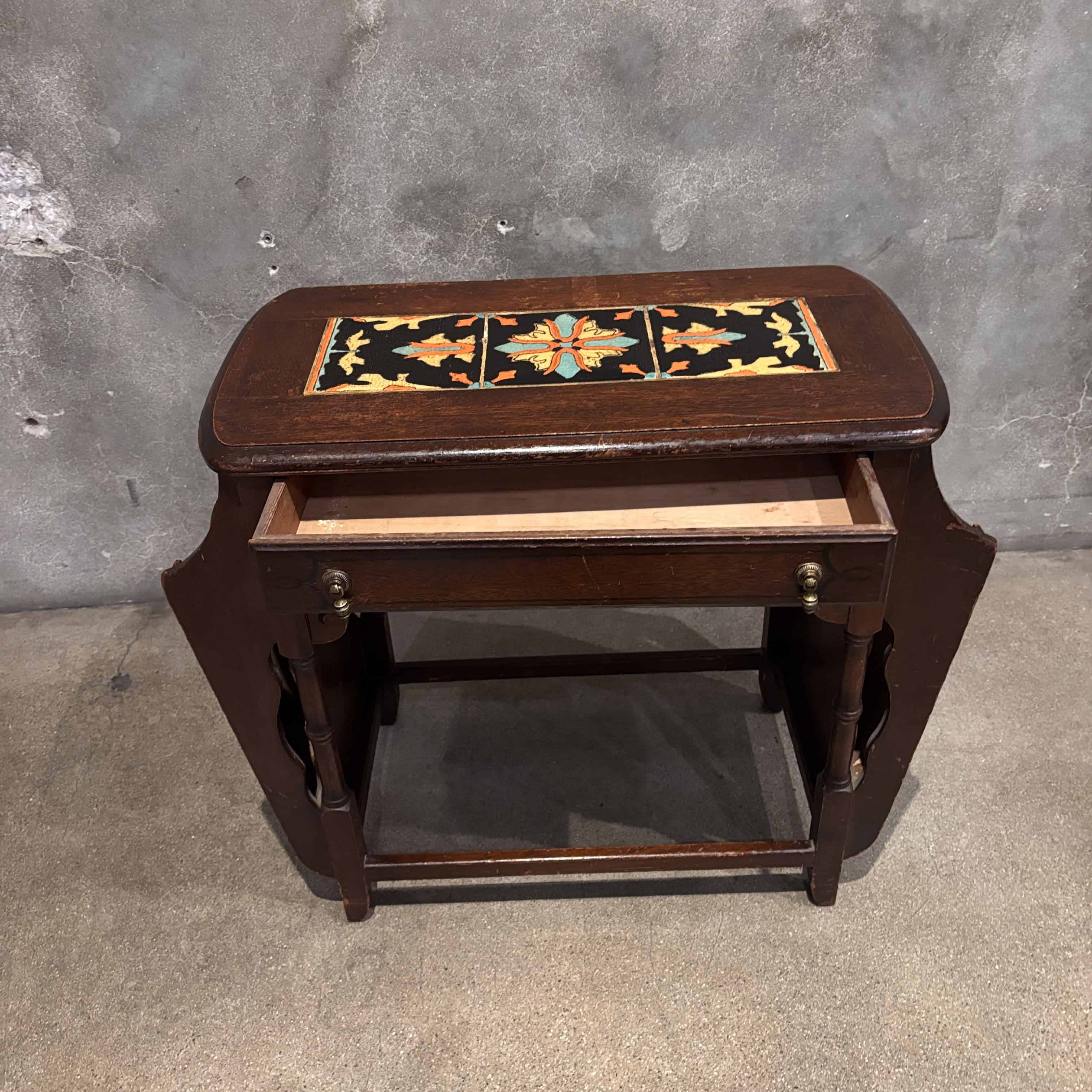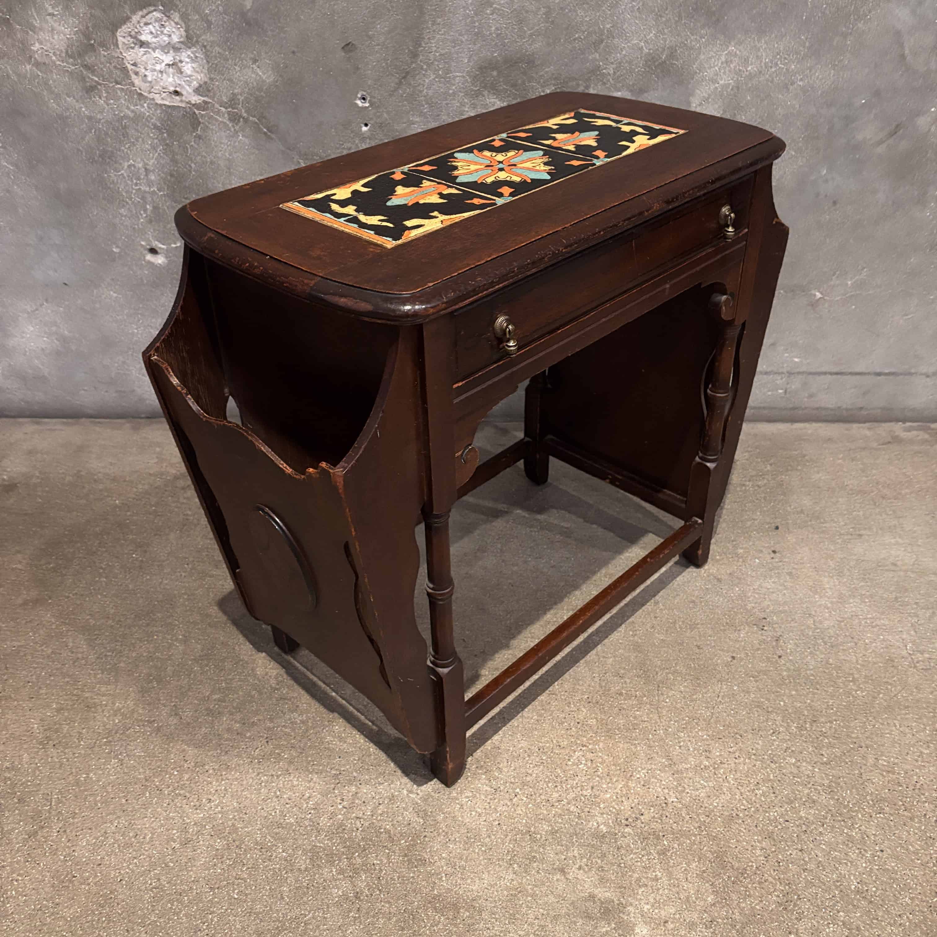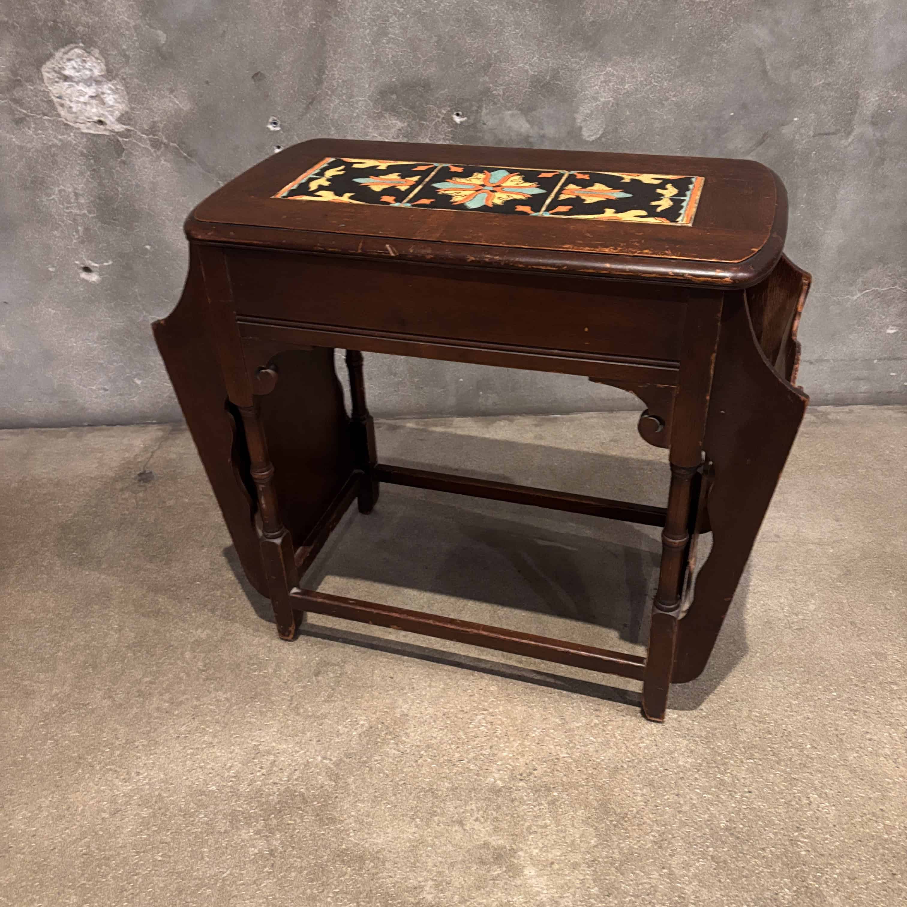 California Tudor Tile Top Walnut Table/ Magazine Stand