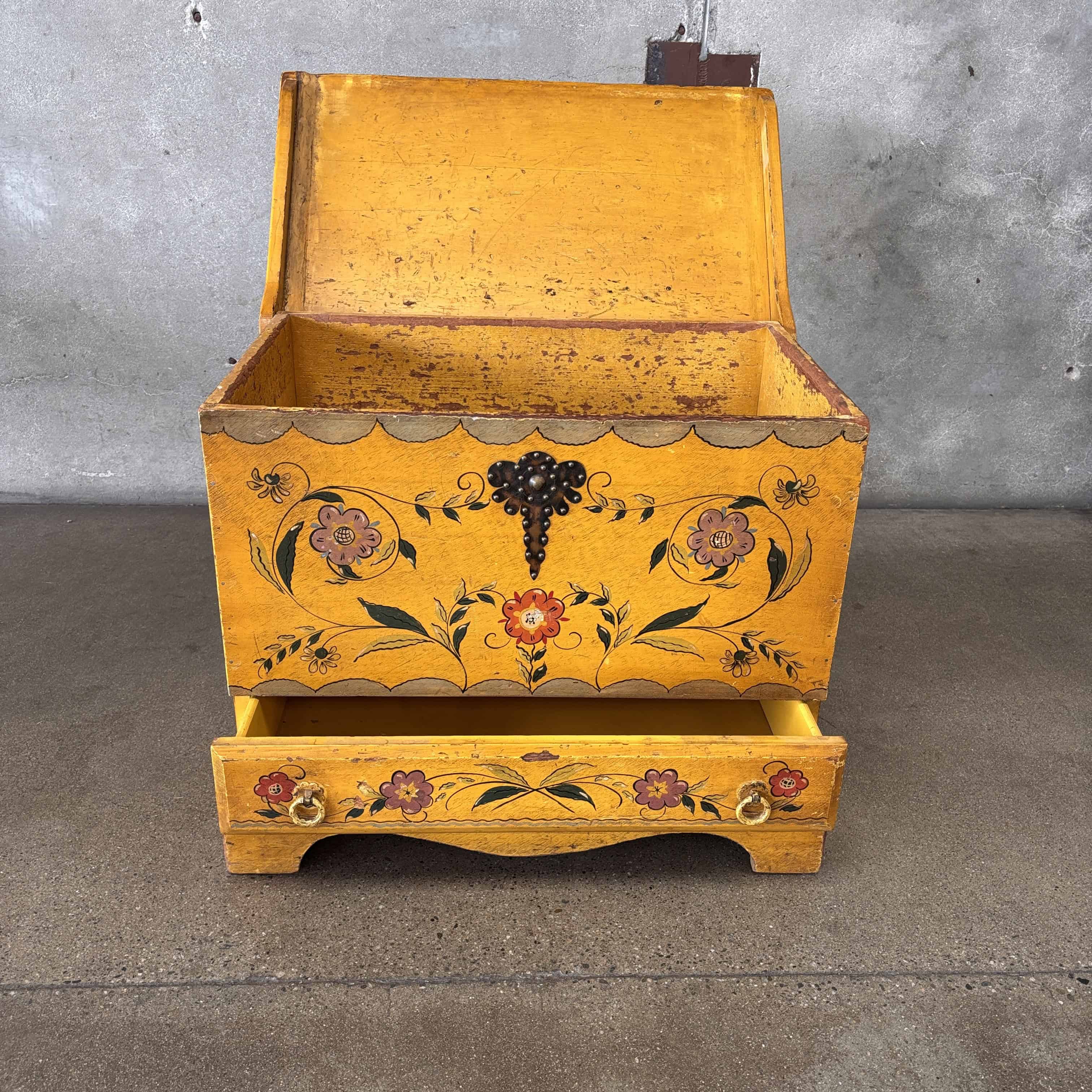 Monterey Style Folk Art Large Blanket Chest Hand Painted 1930's
