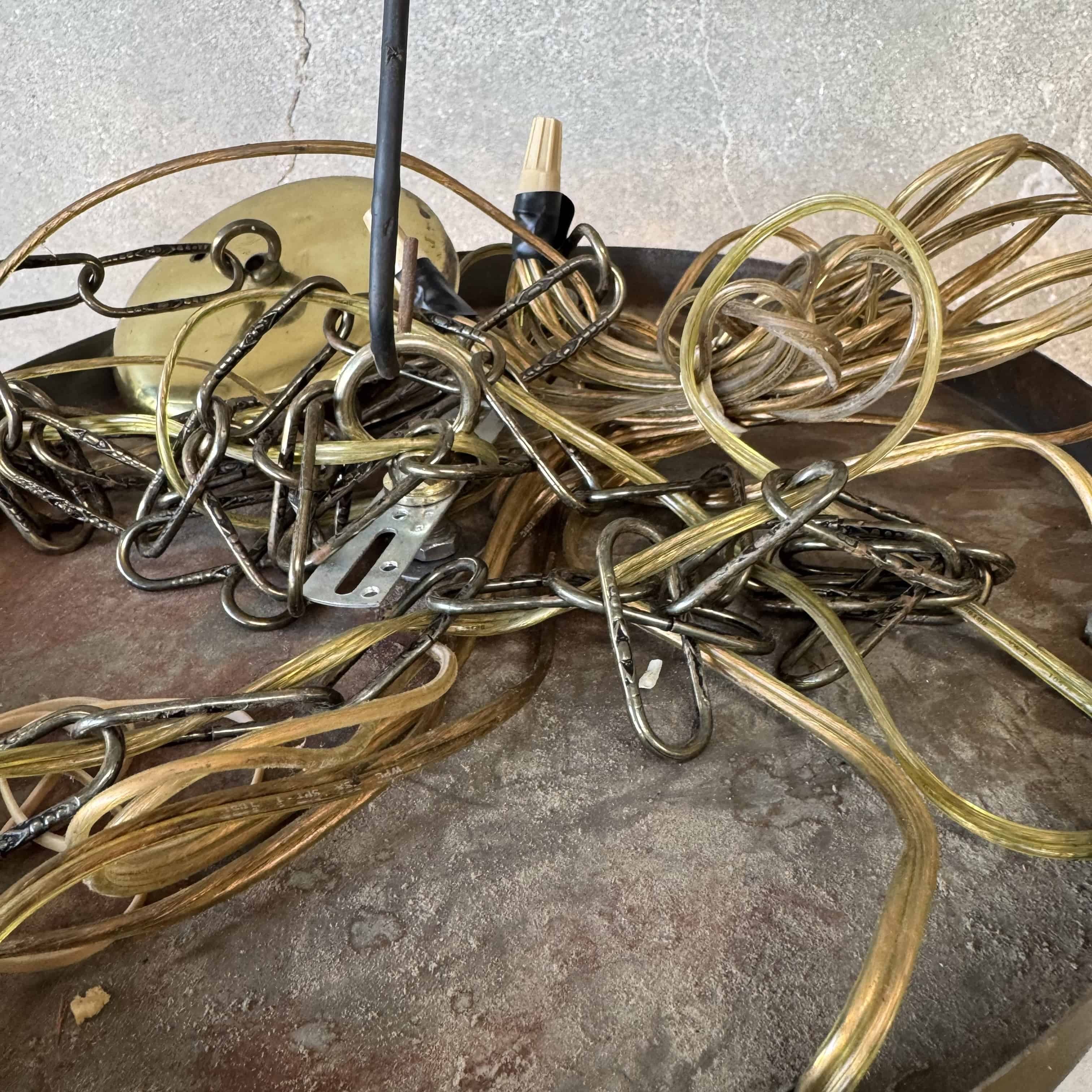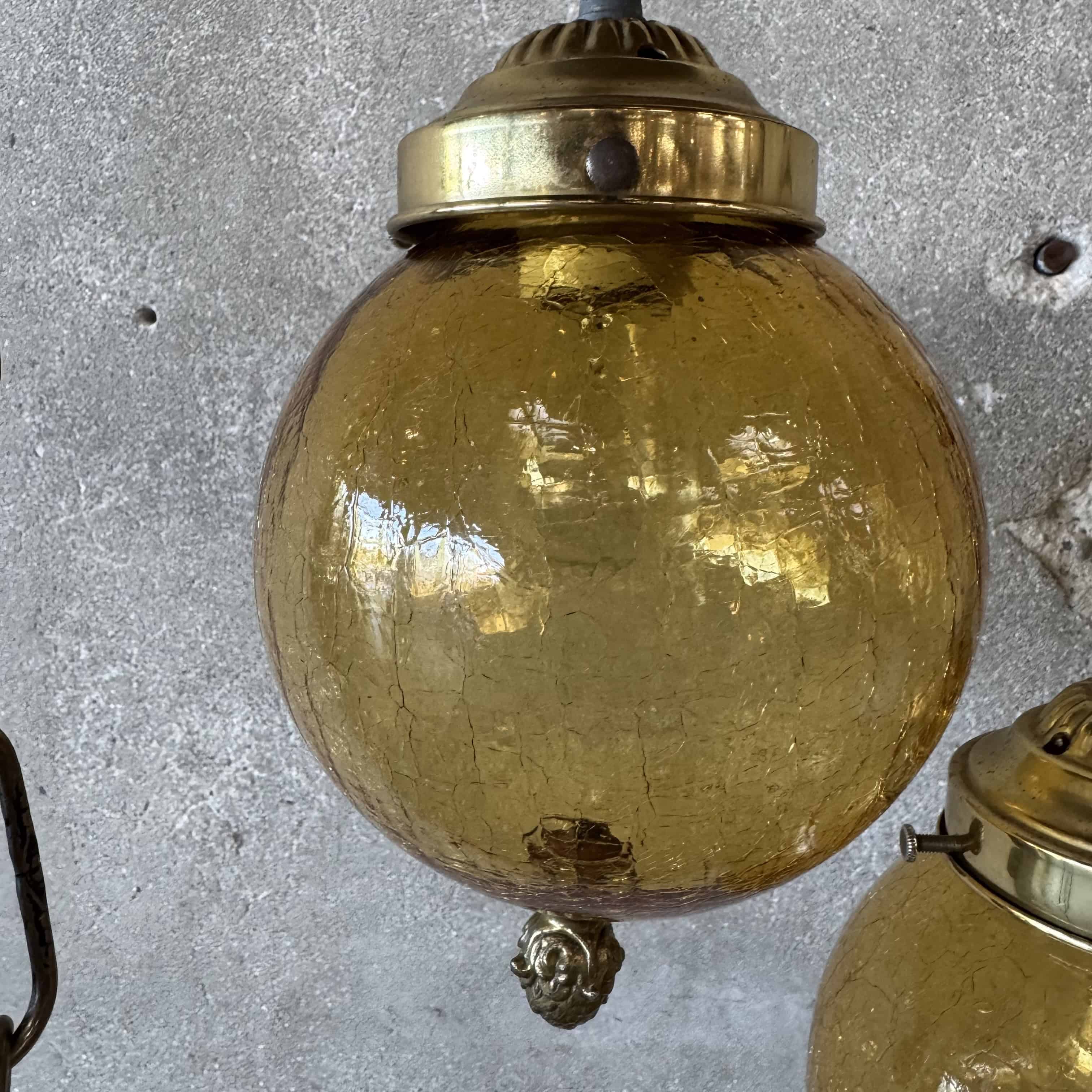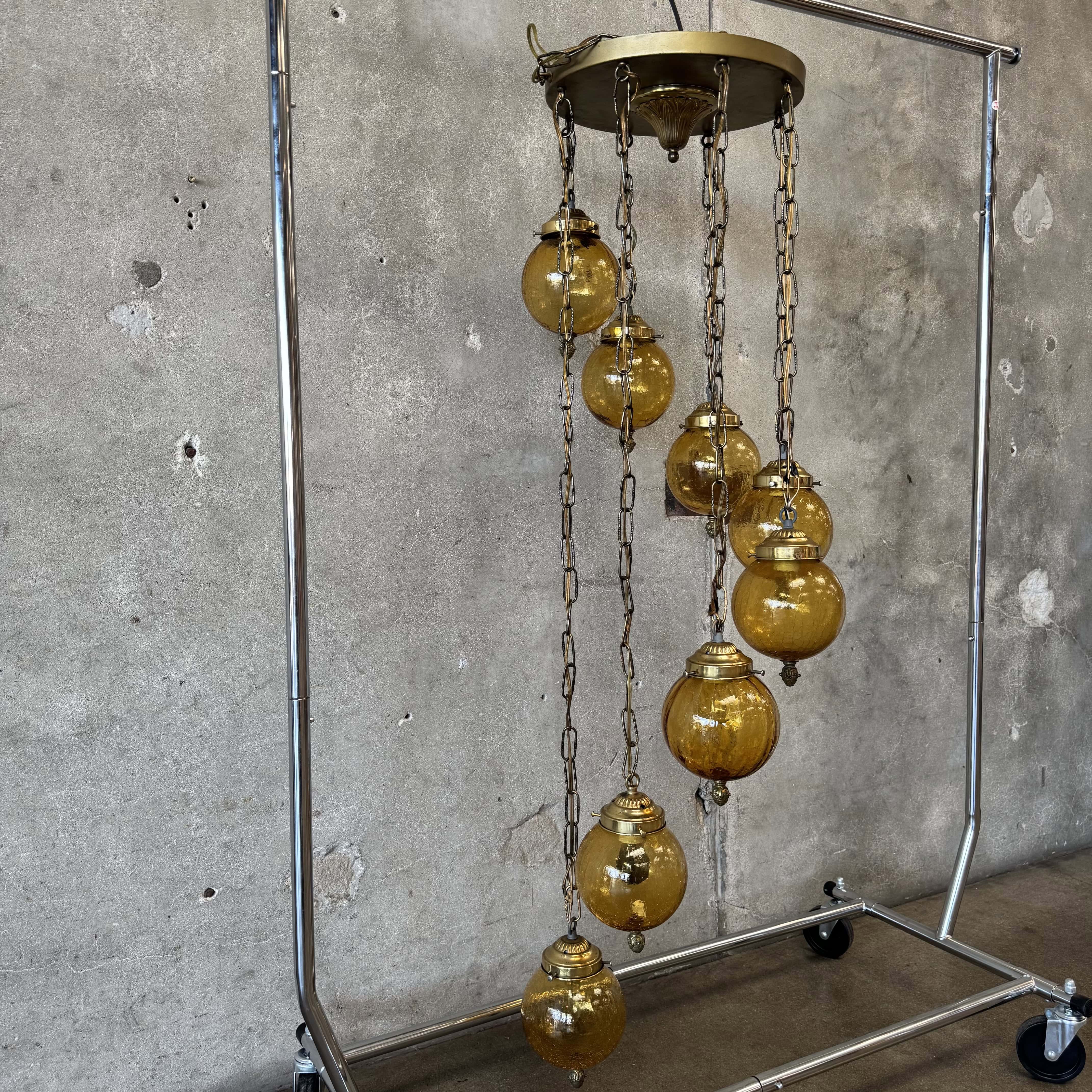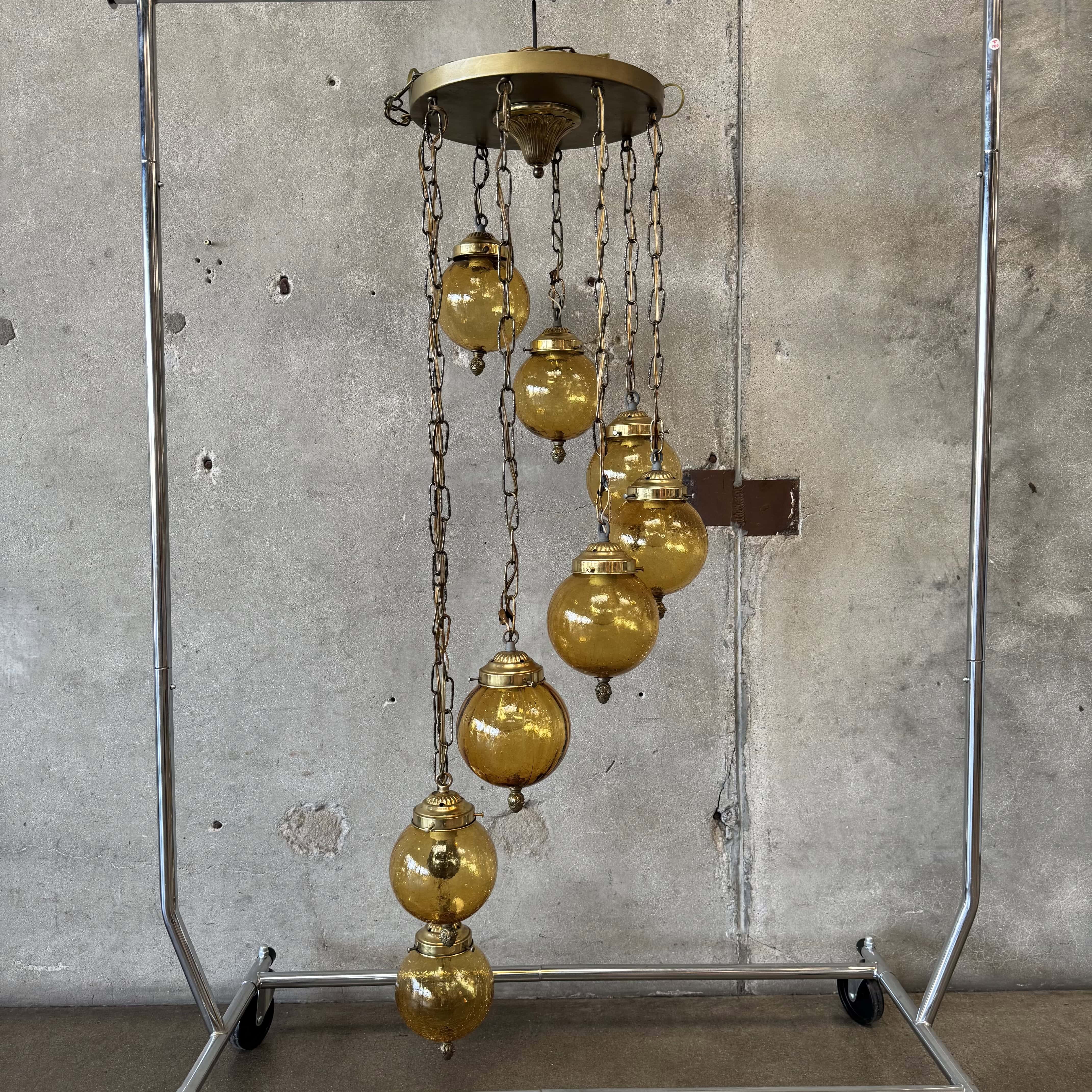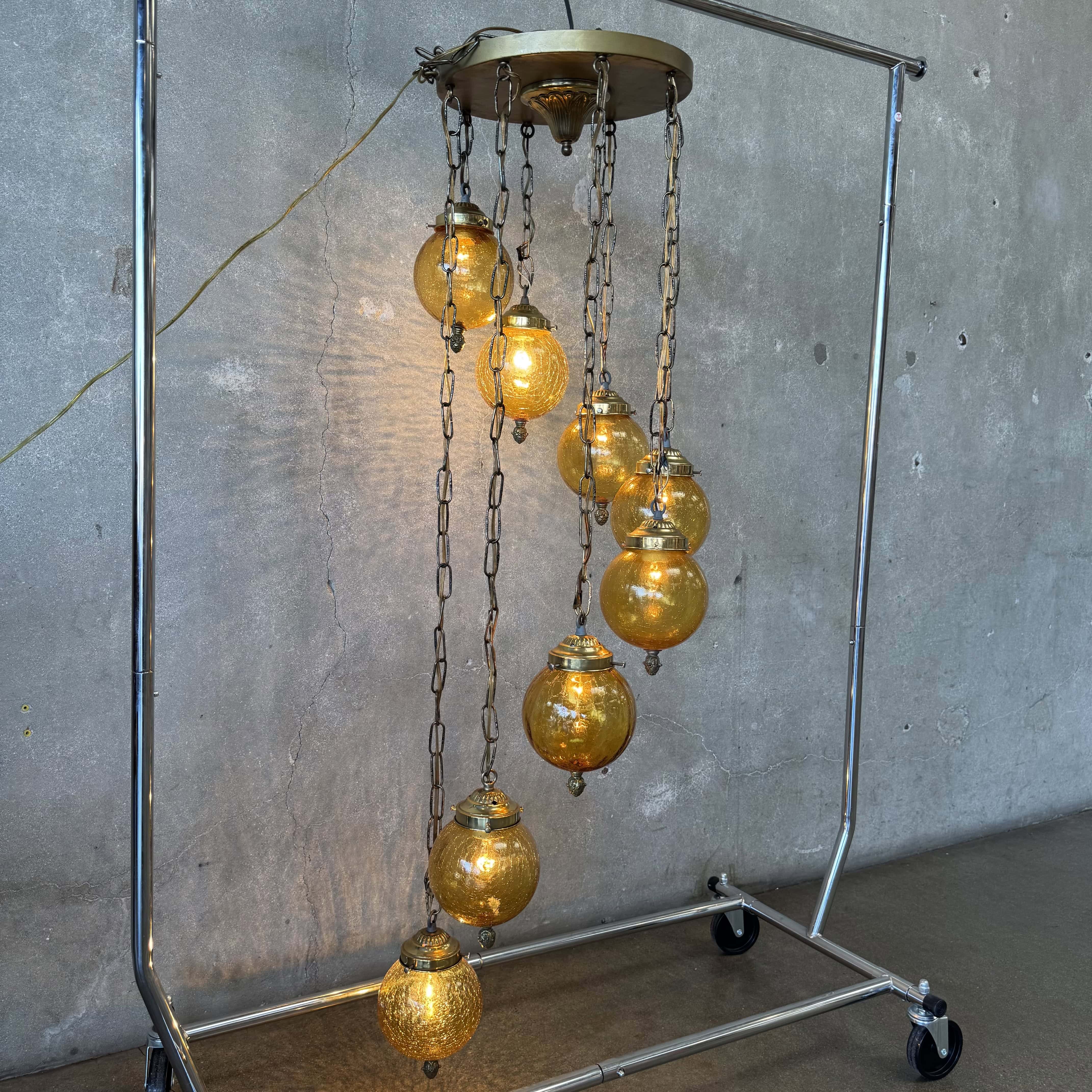Mid Century Modern Amber Crackle Glass Cascade Ceiling Swag Light
