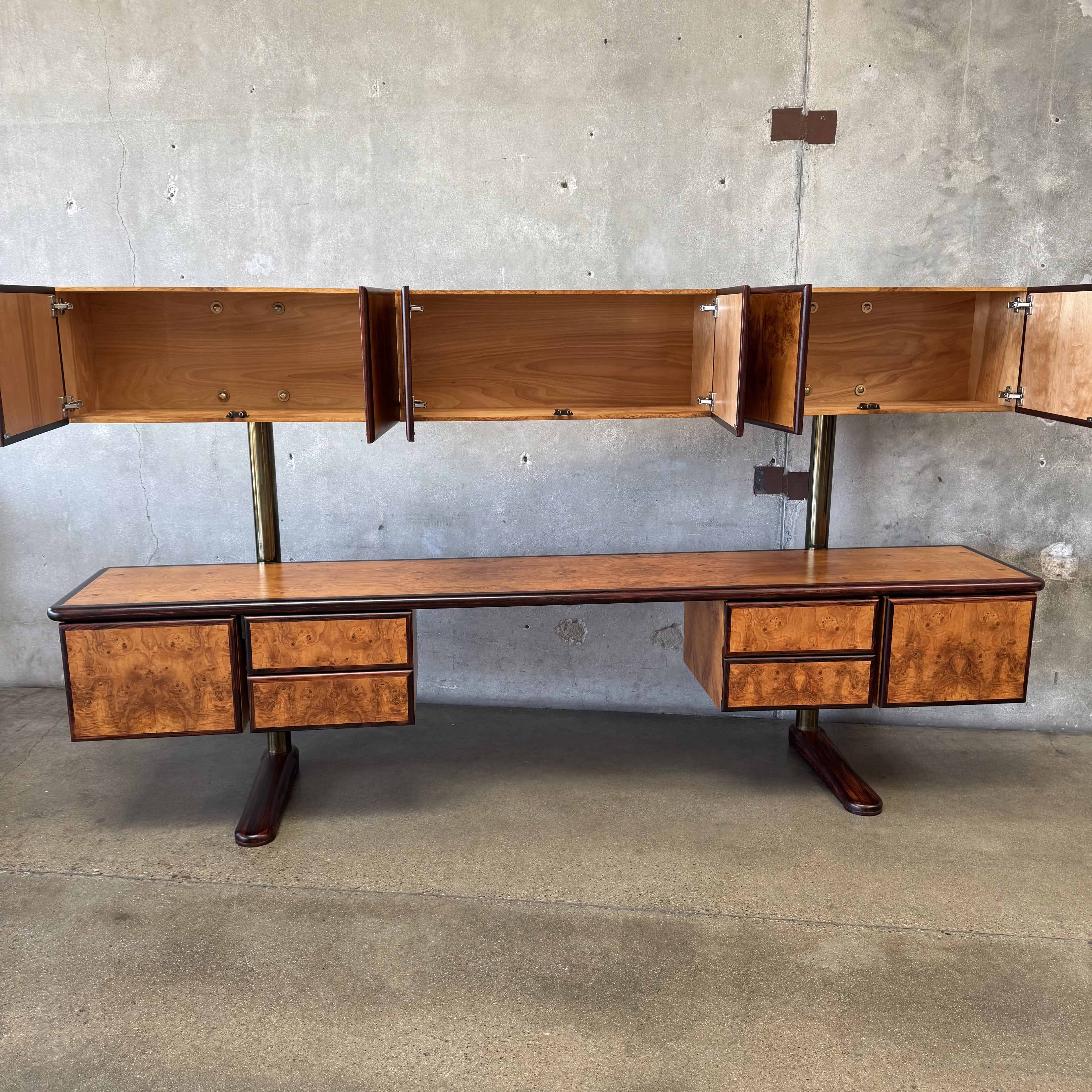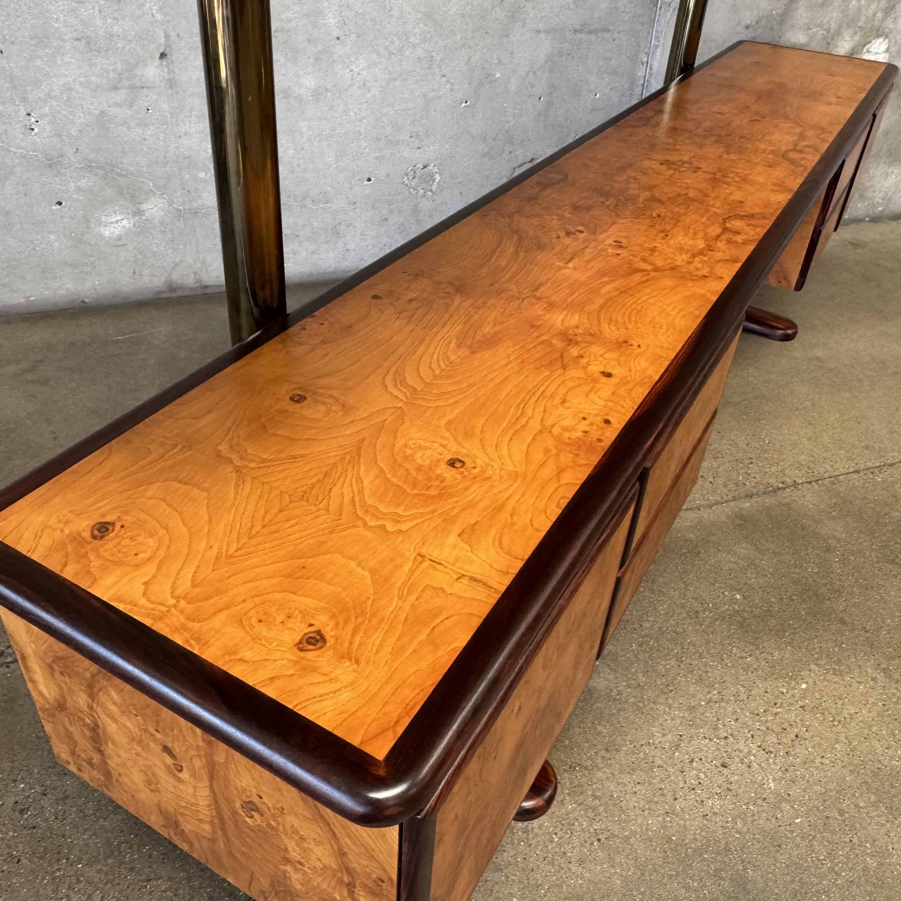 Mid Century Brass & Burlwood Wall Unit With Desk
