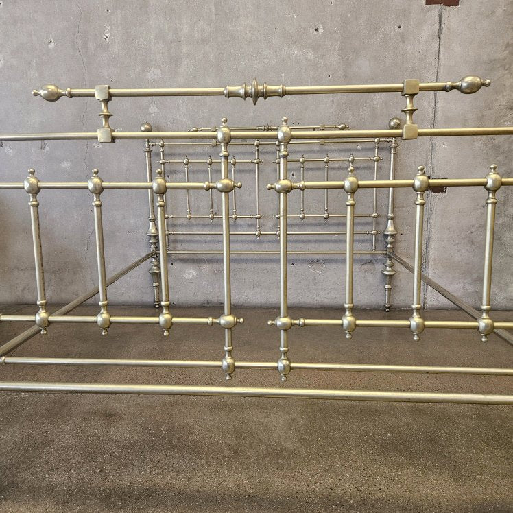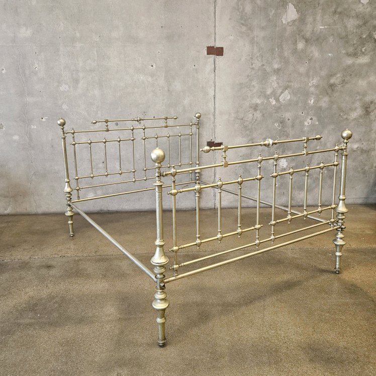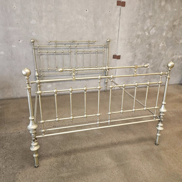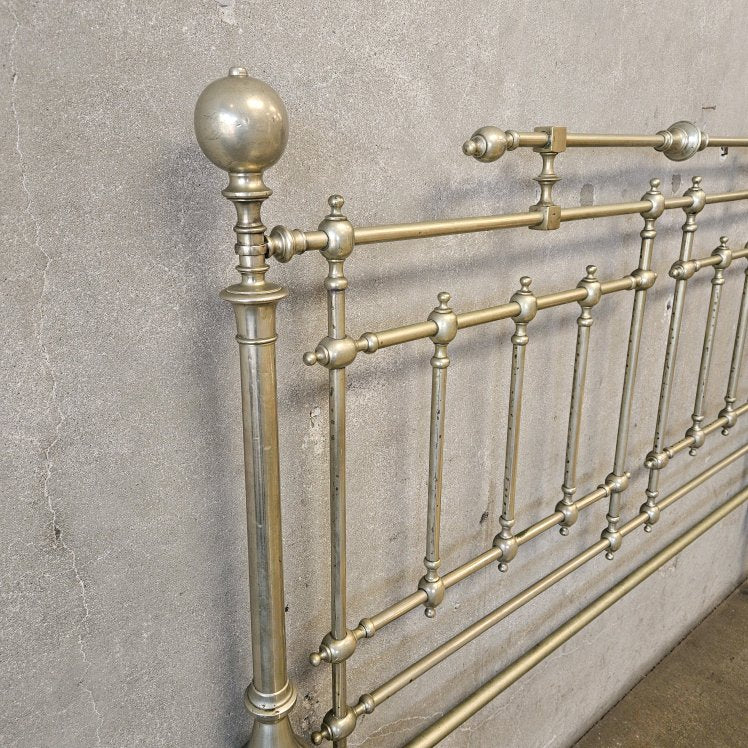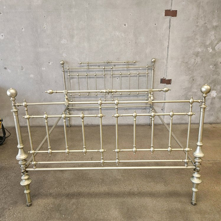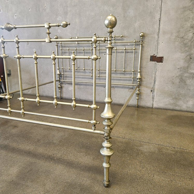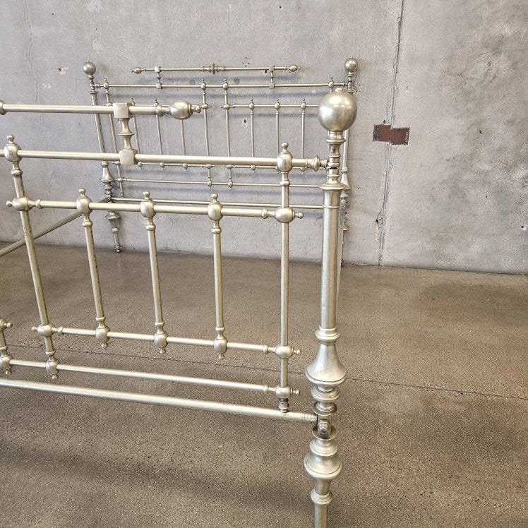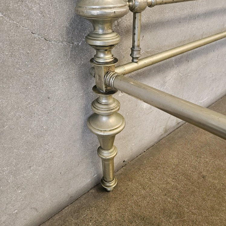 Antique Italian Queen Sz Steel and Pewter Clad Bed Frame