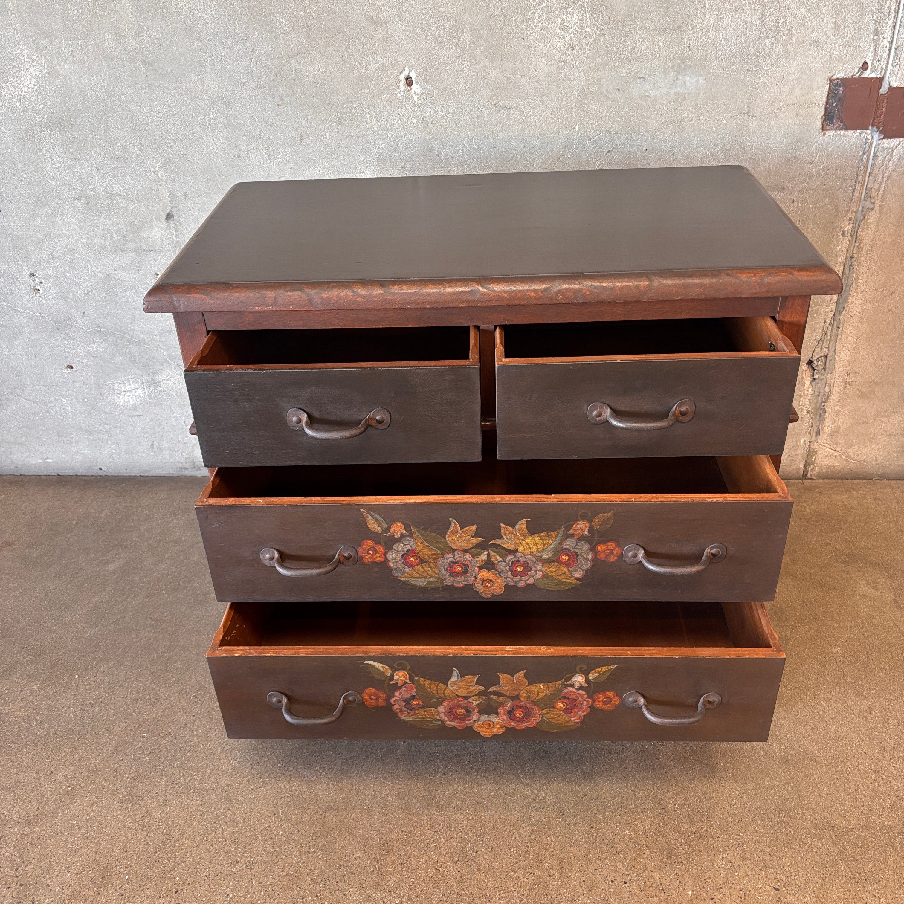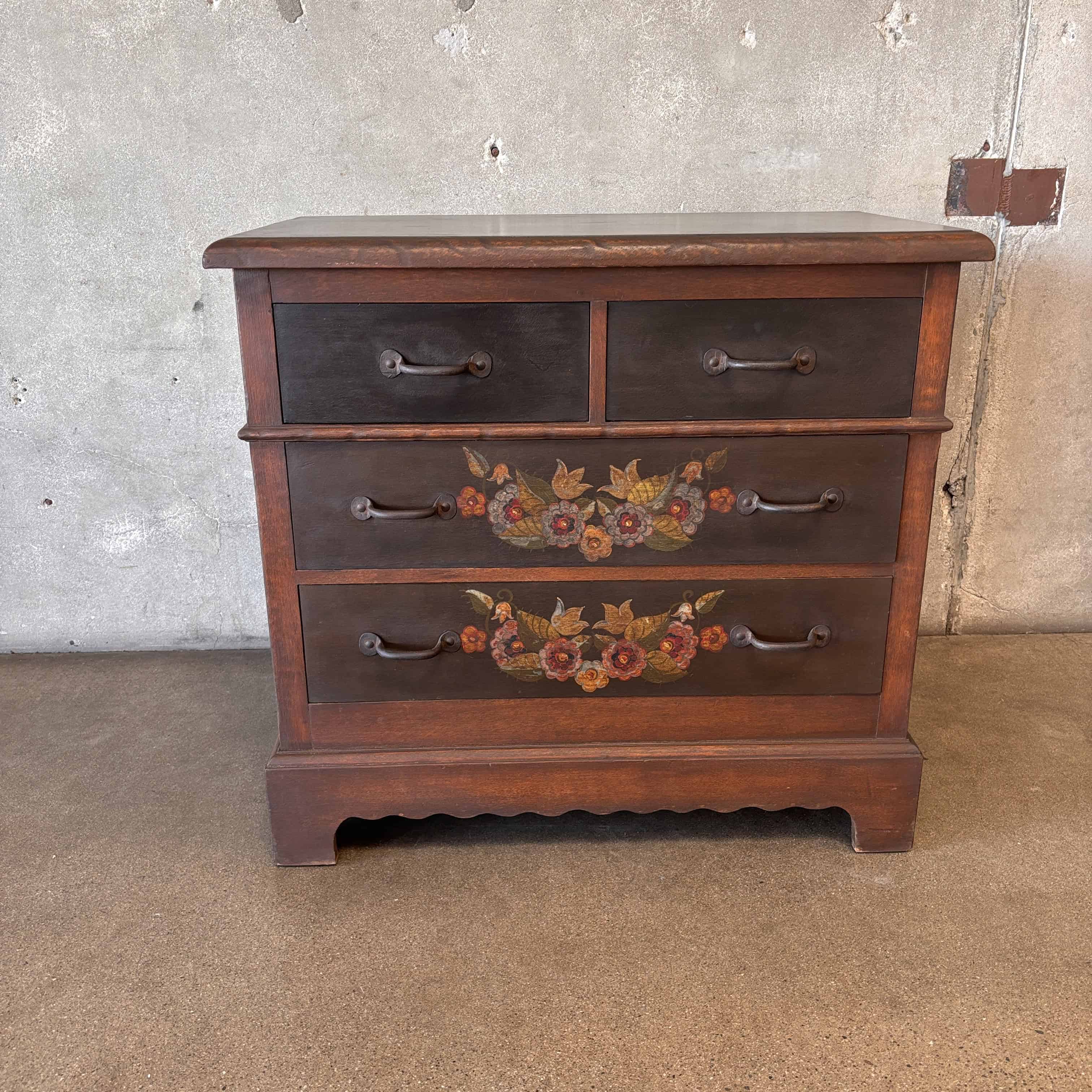 Rare & Early 1928 Monterey Furniture Old Wood Floral Dresser