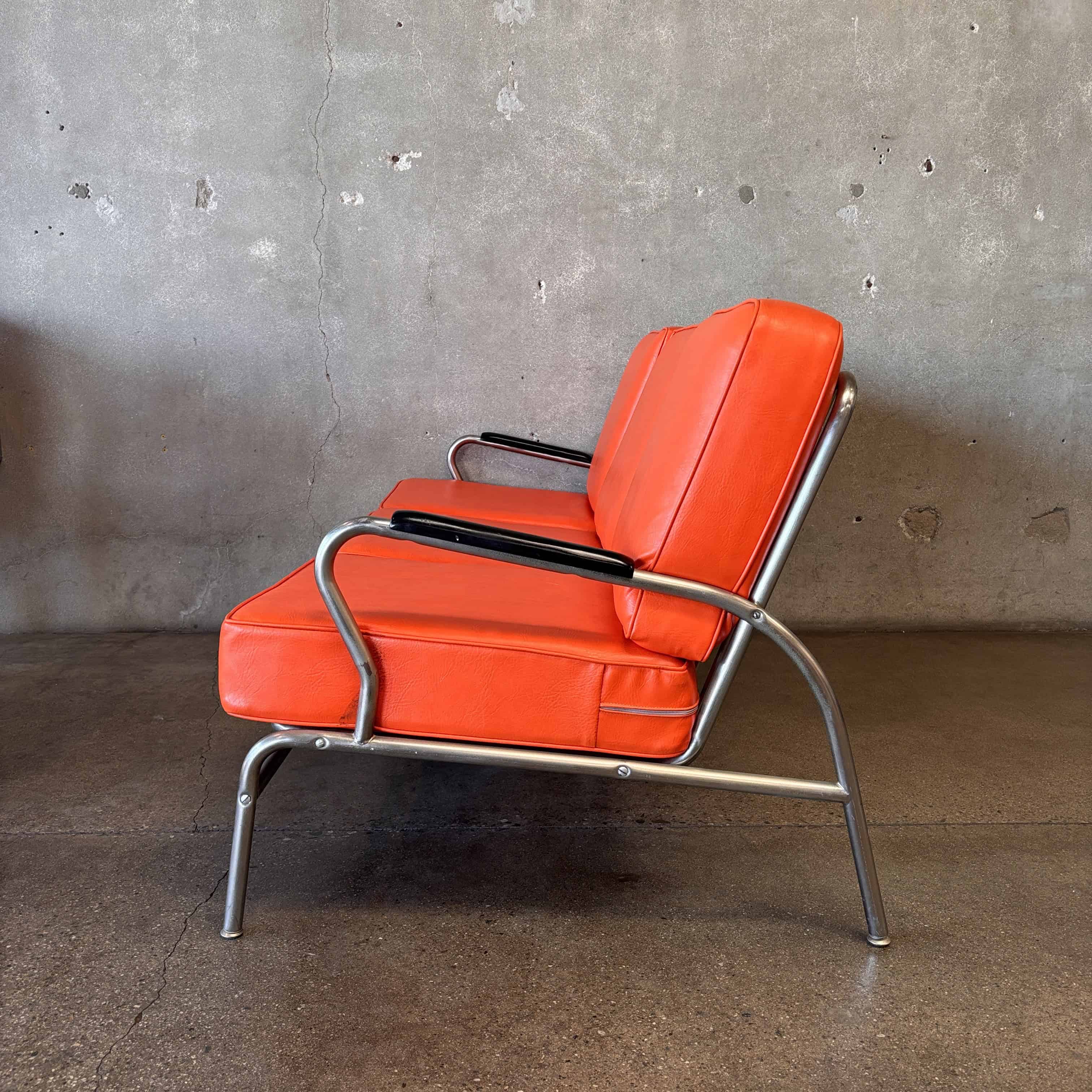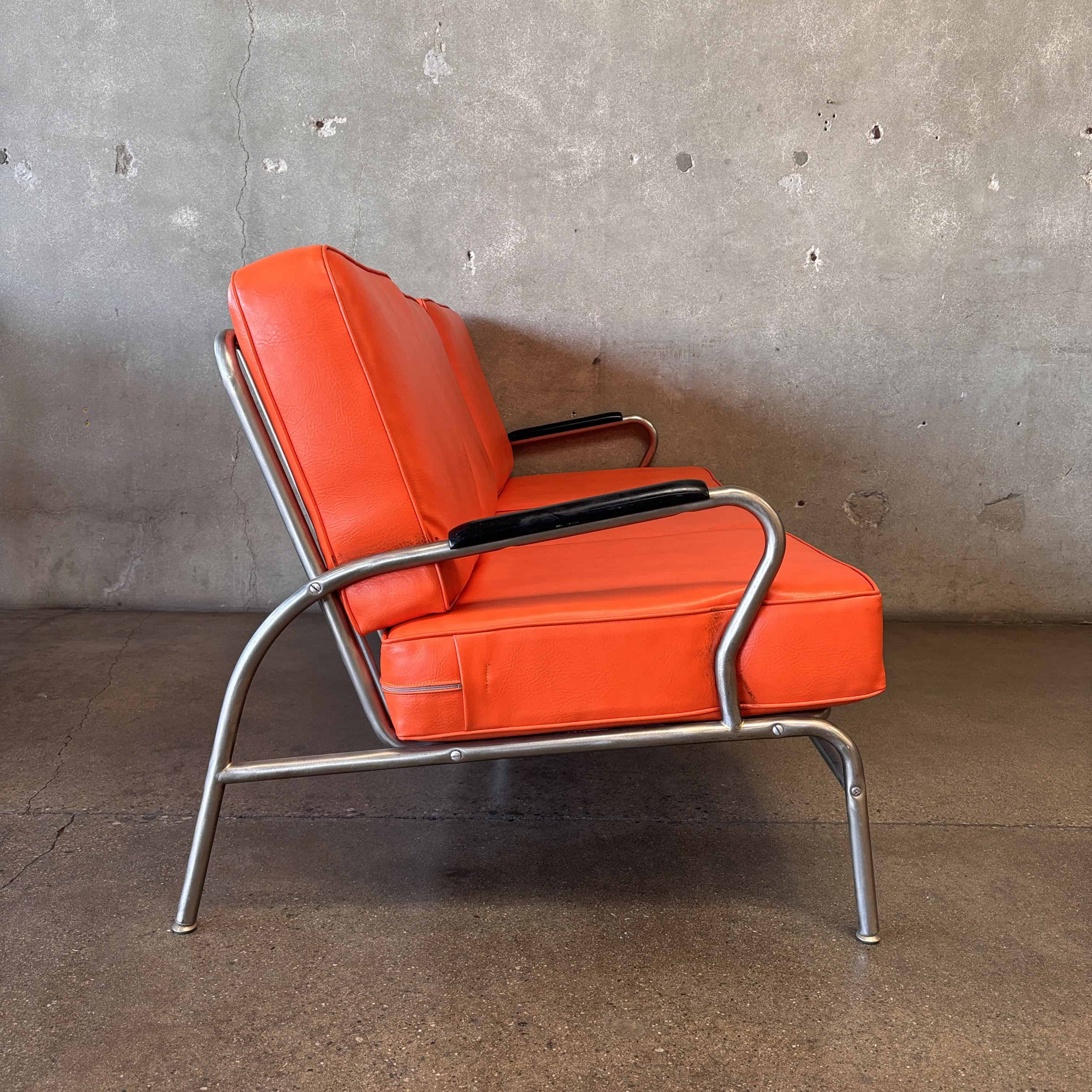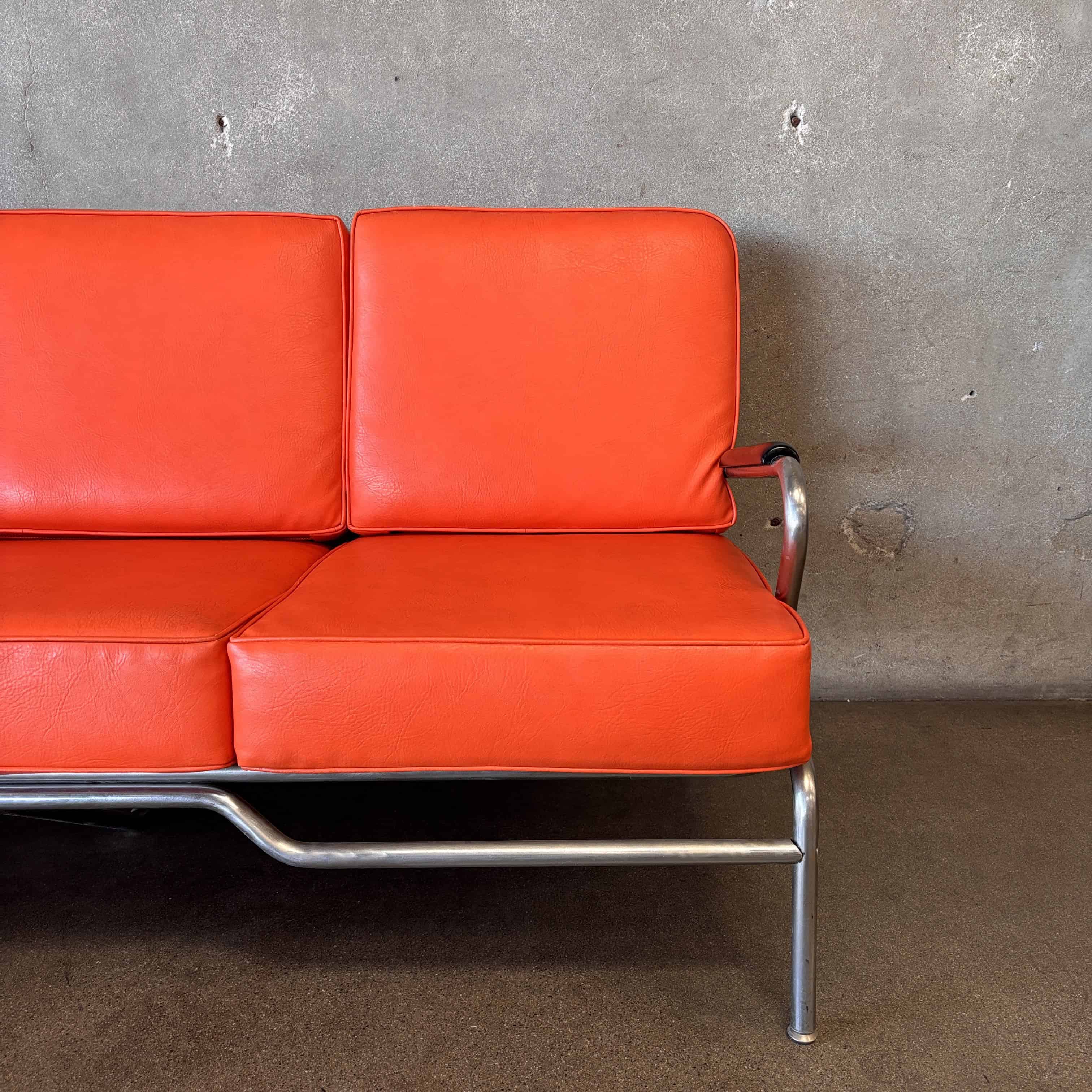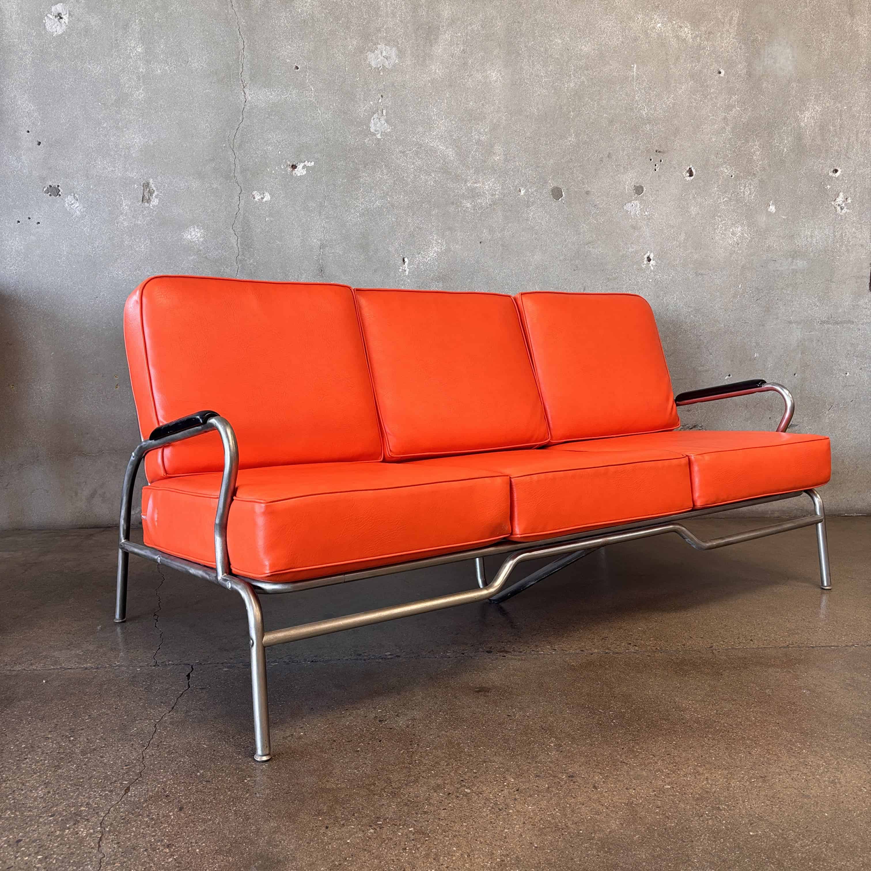 Vintage Art Deco Streamline Vinyl and Chrome Sofa