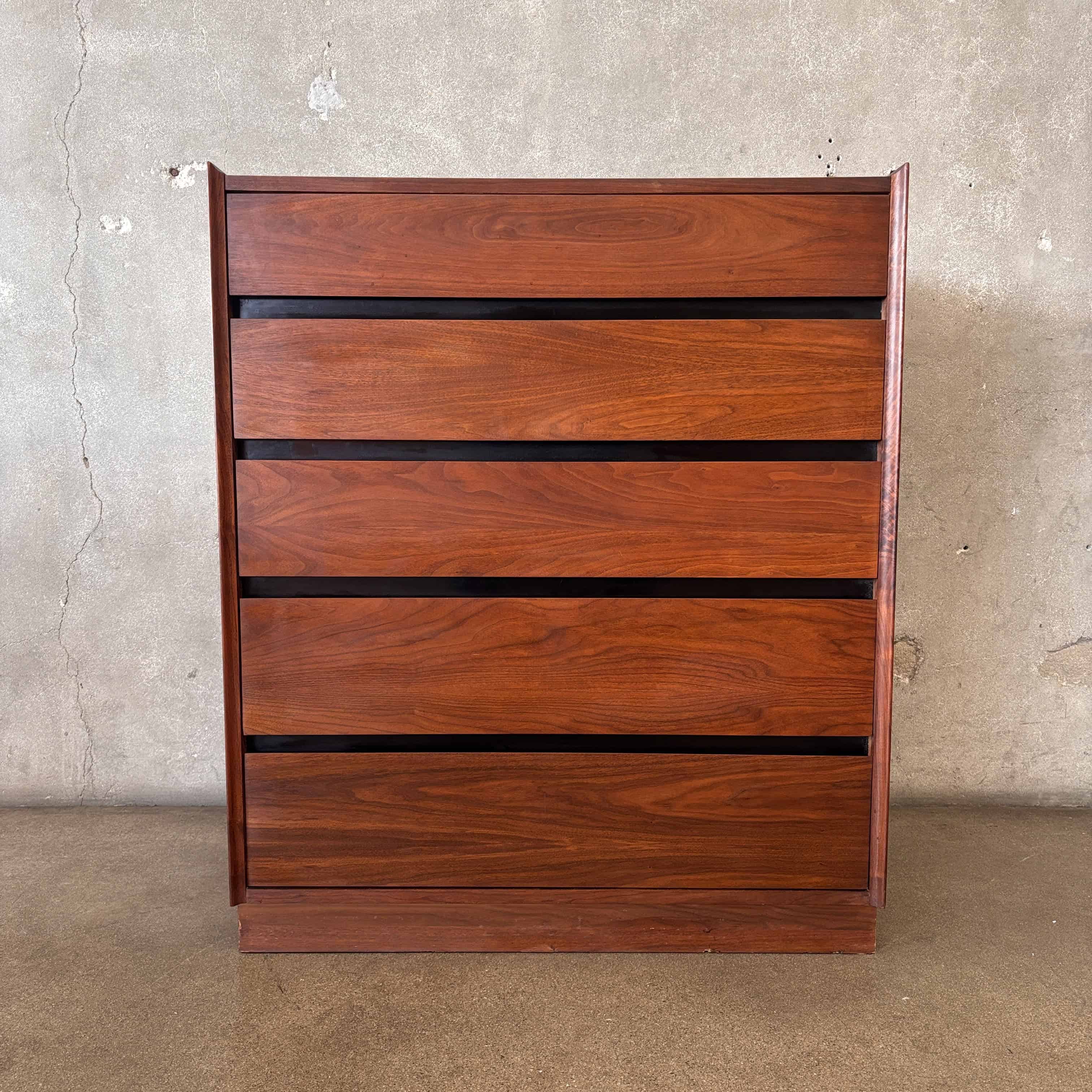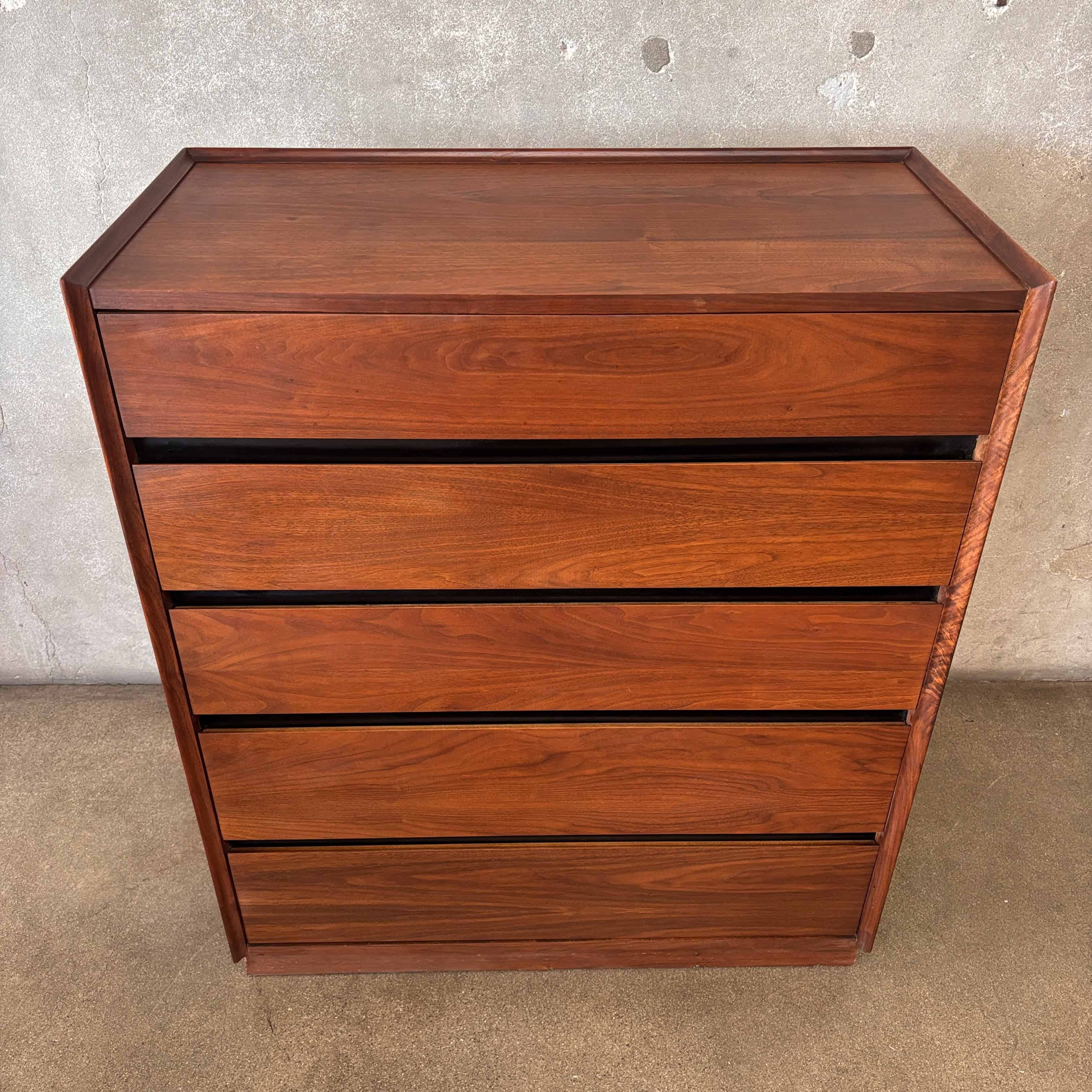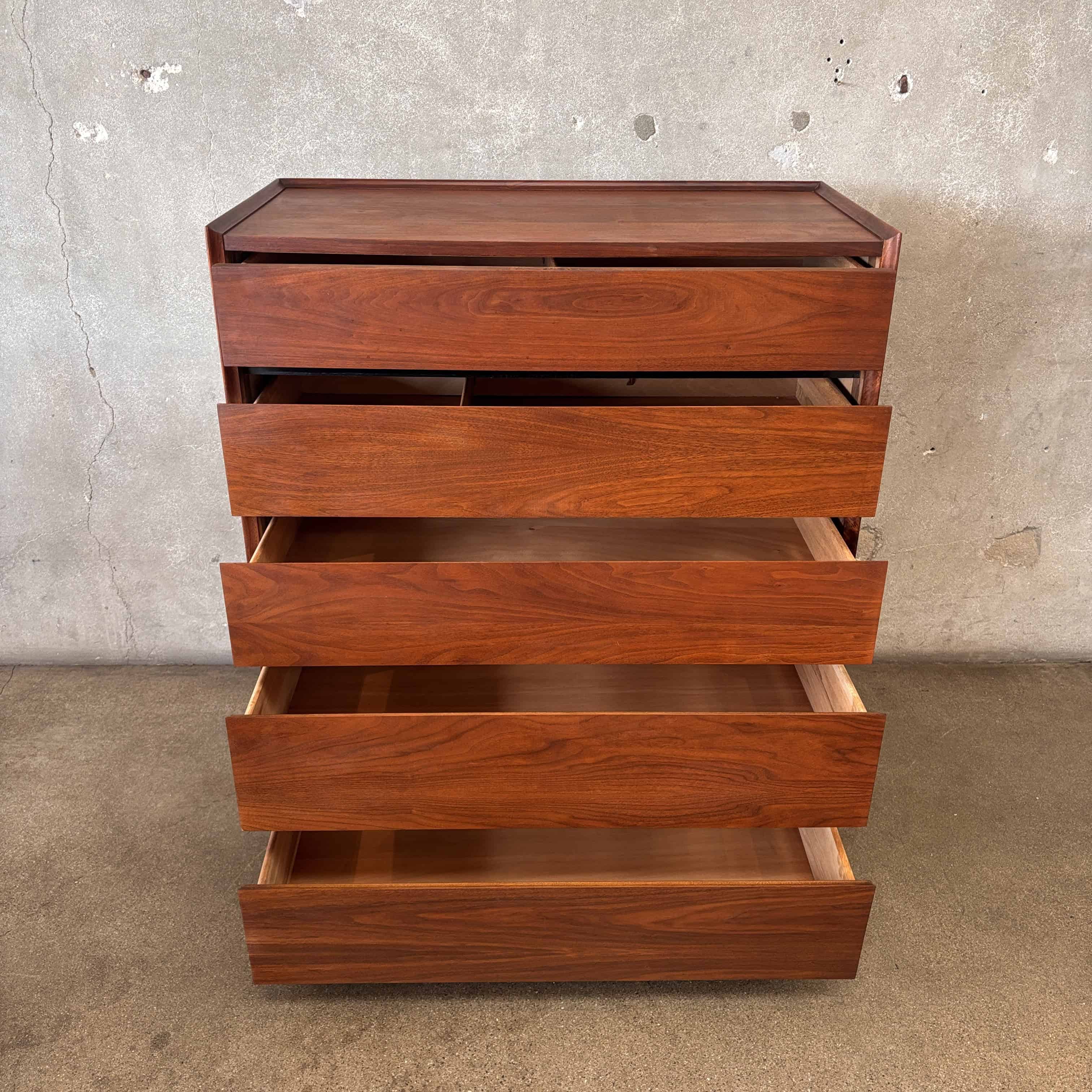 Dillingham "Esprit" High Boy Five (5) Drawer Dresser w/ Original Oil Finish - Walnut Wood