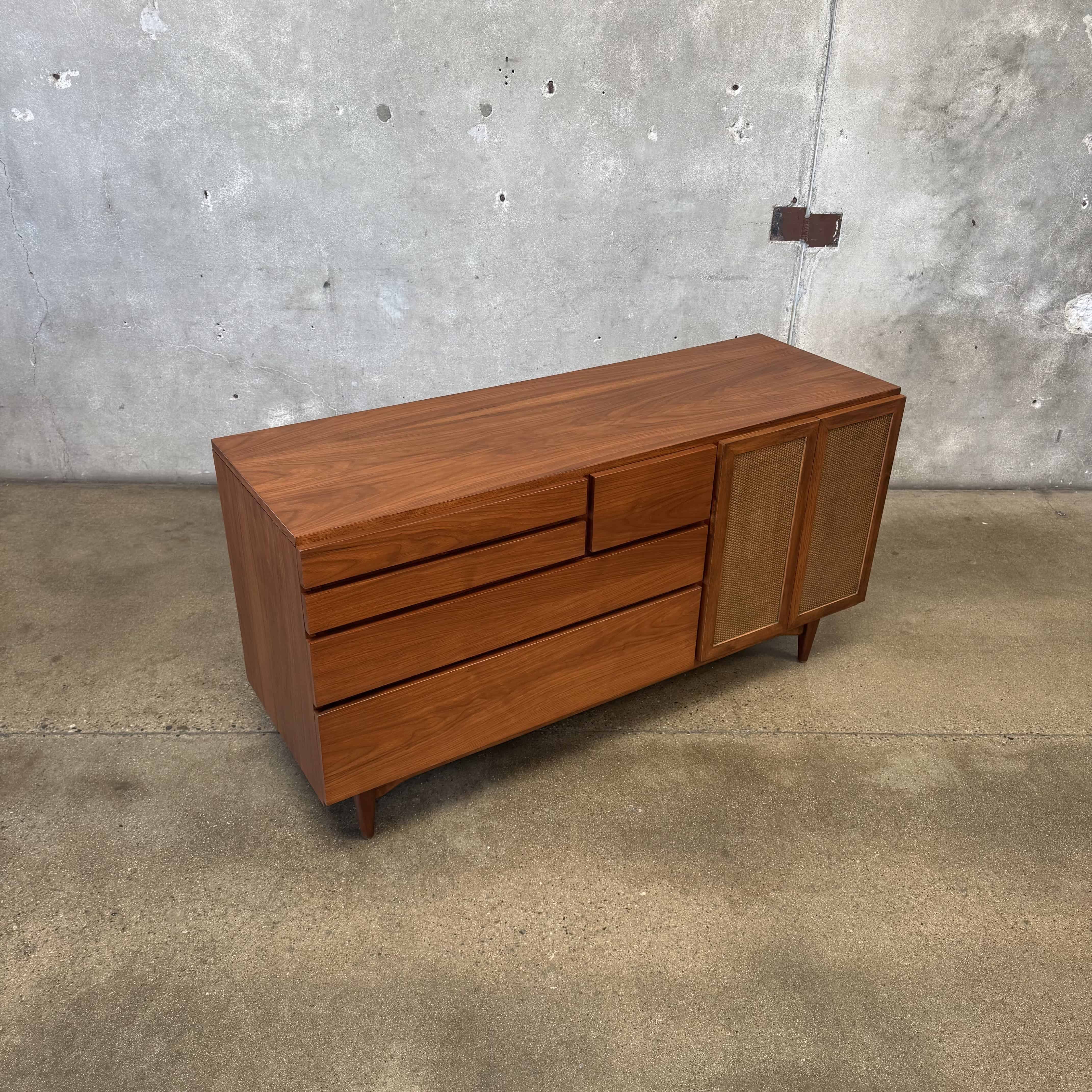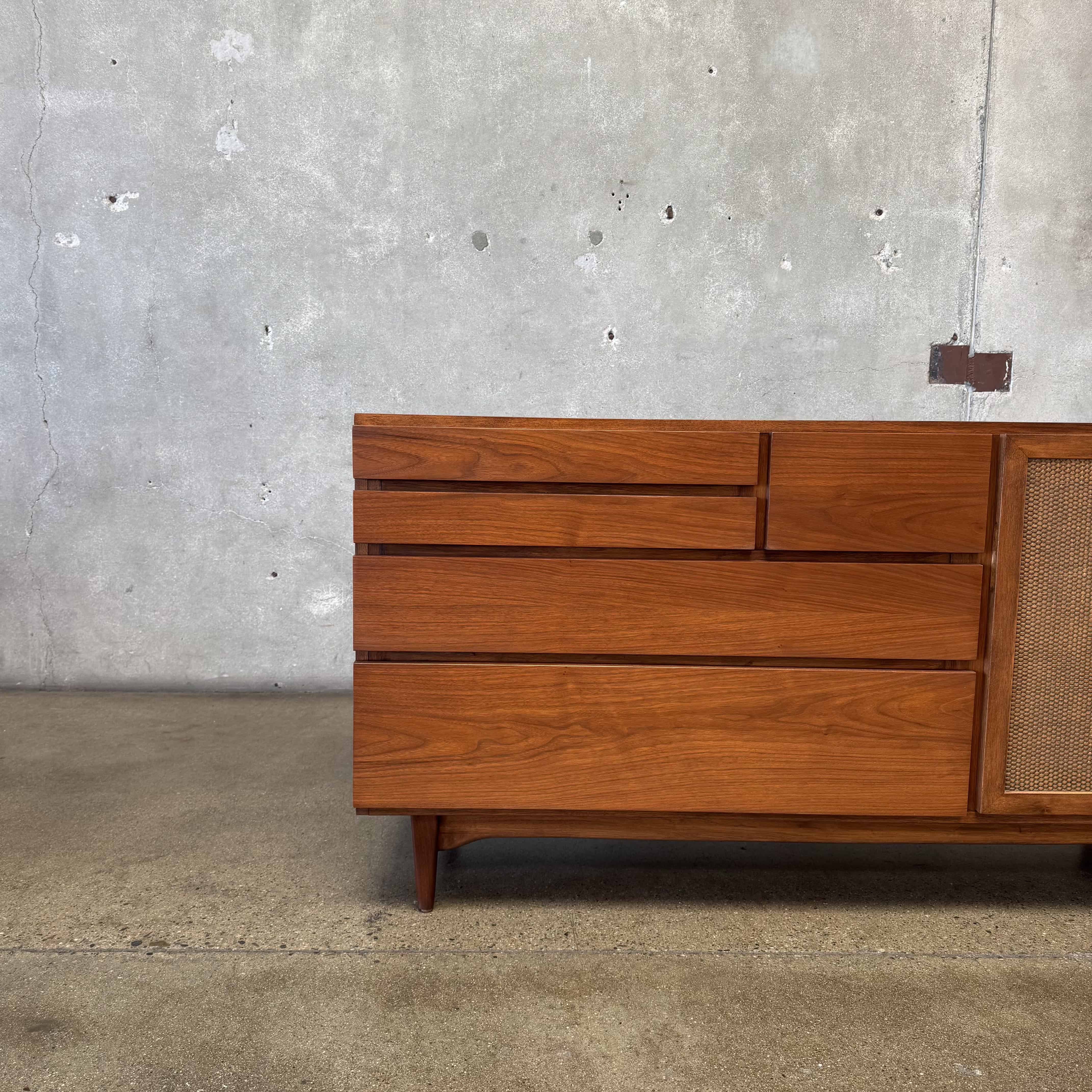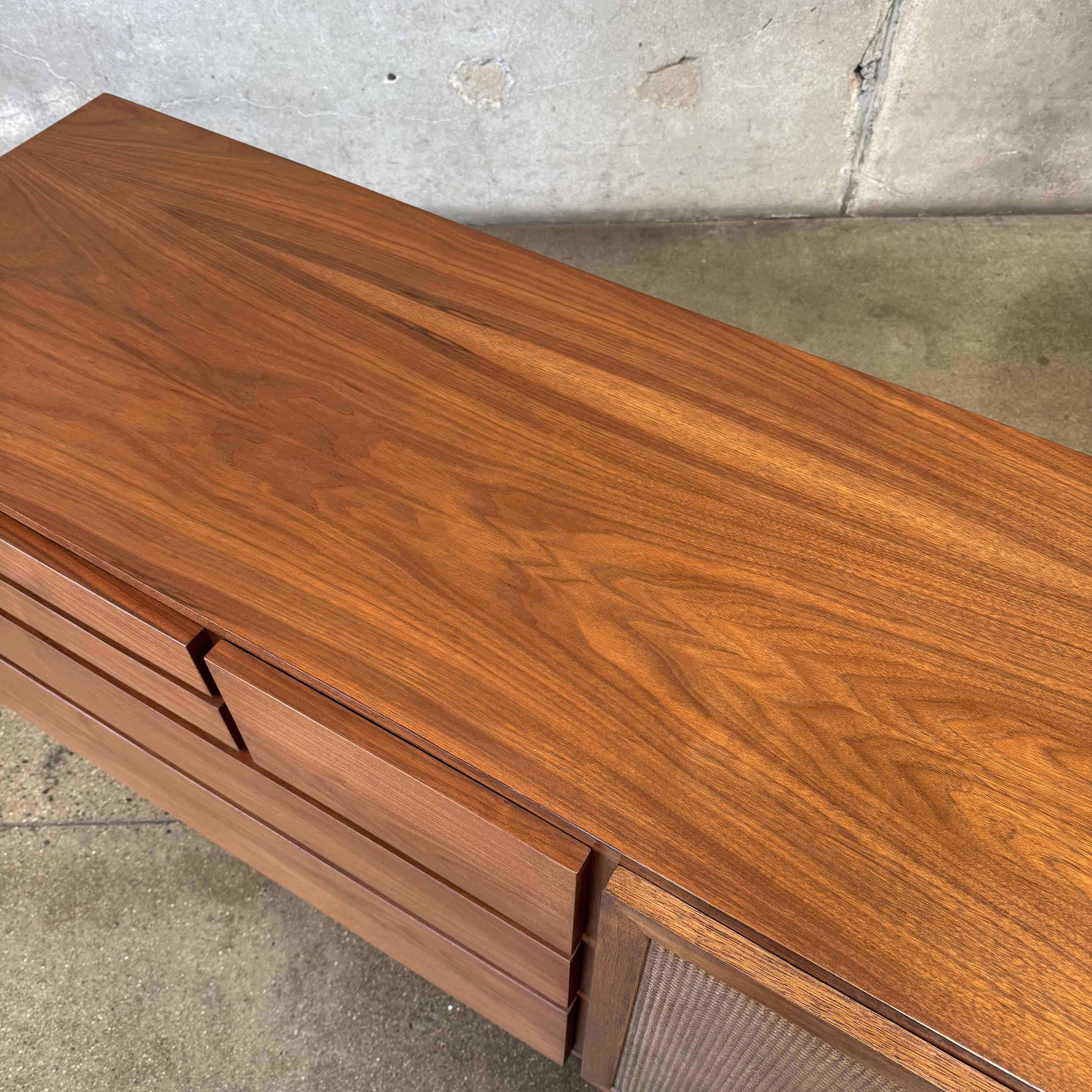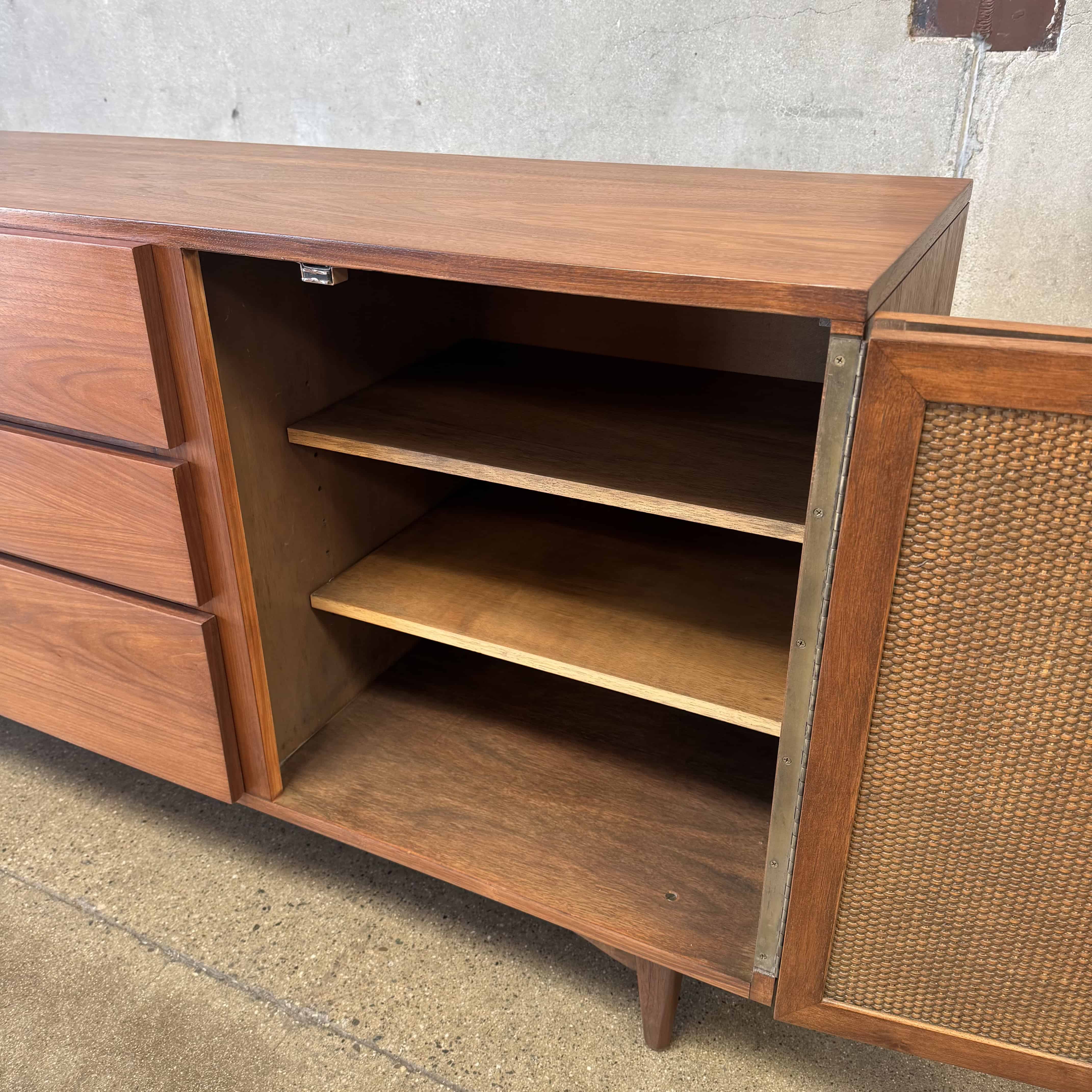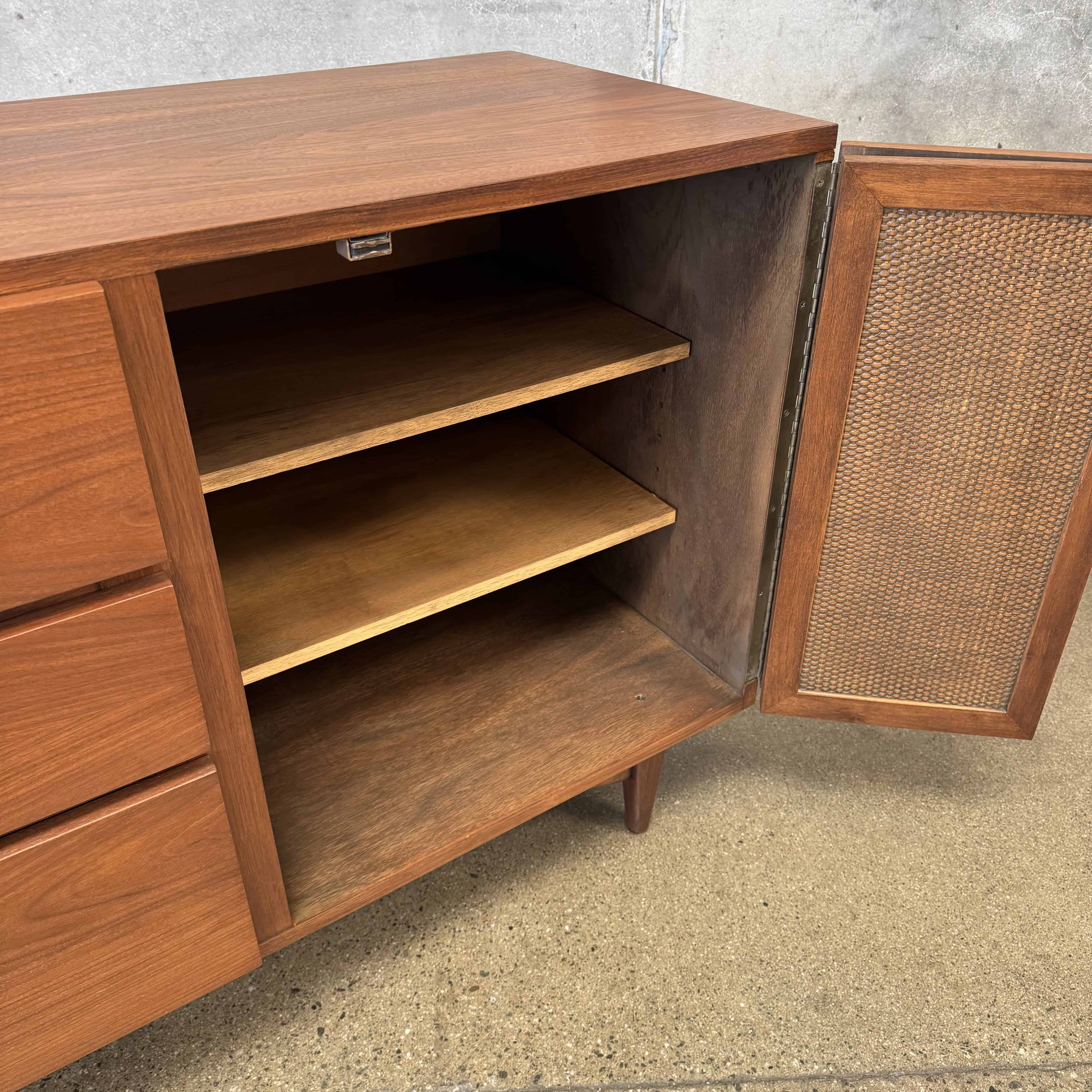 Mid Century Modern Walnut & Cane Credenza