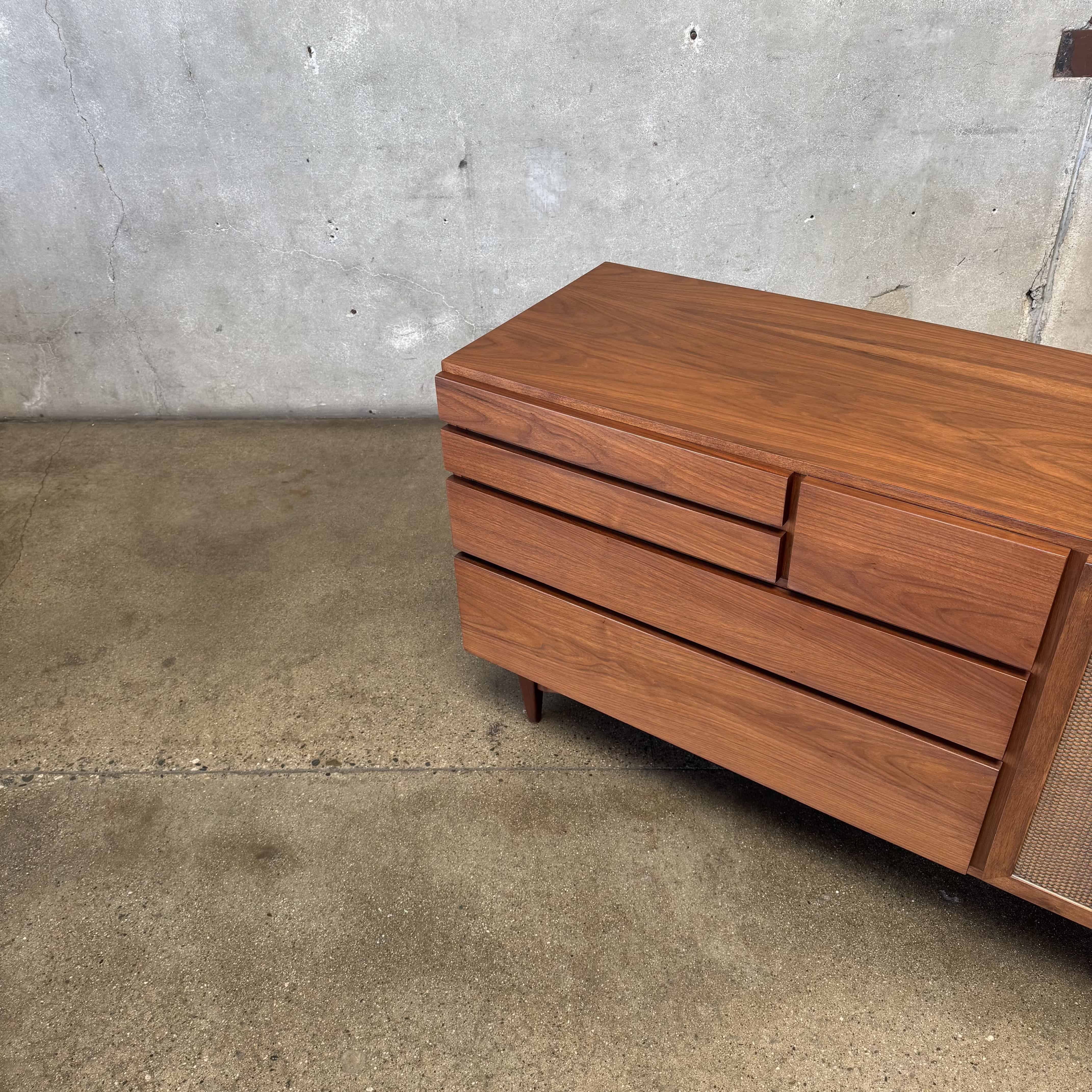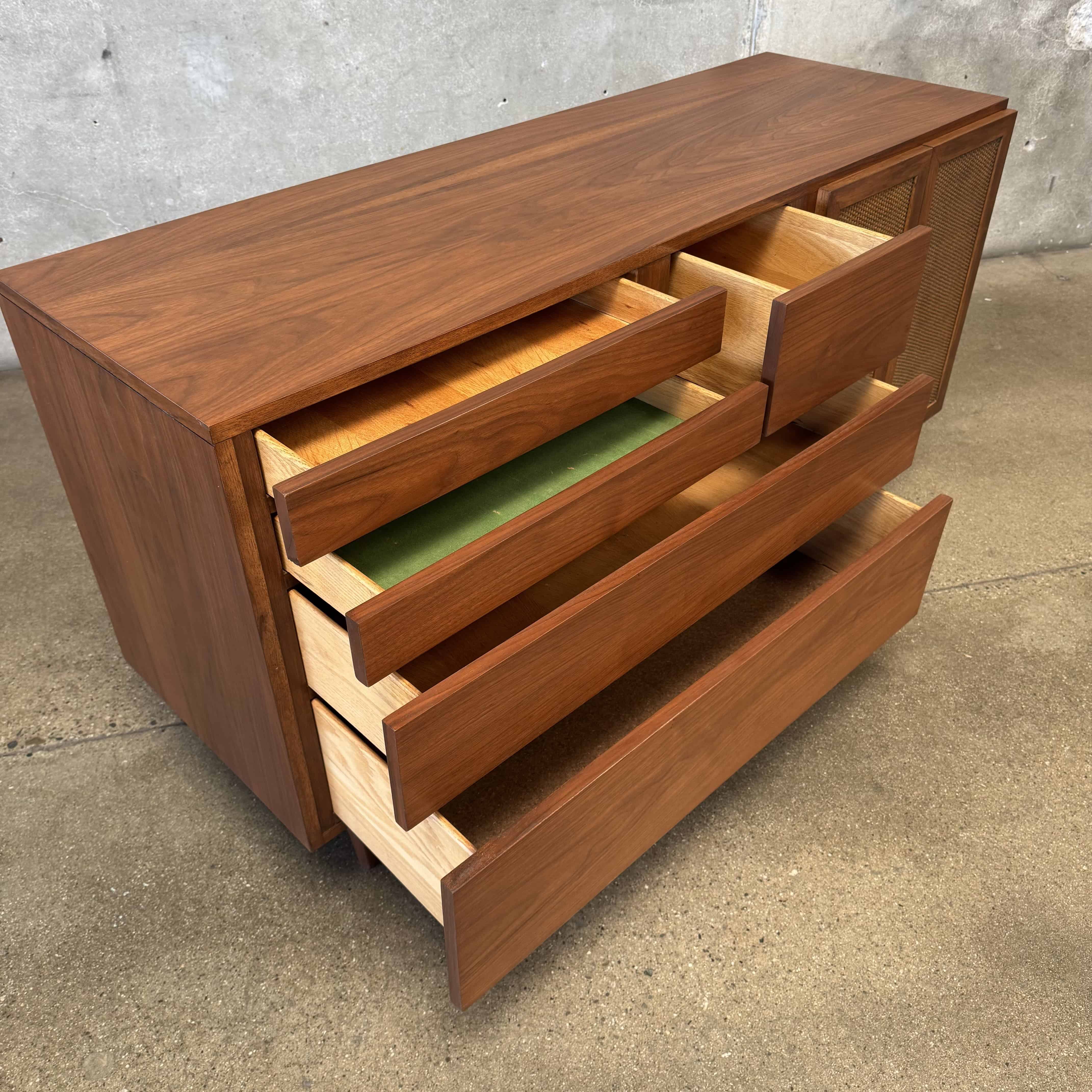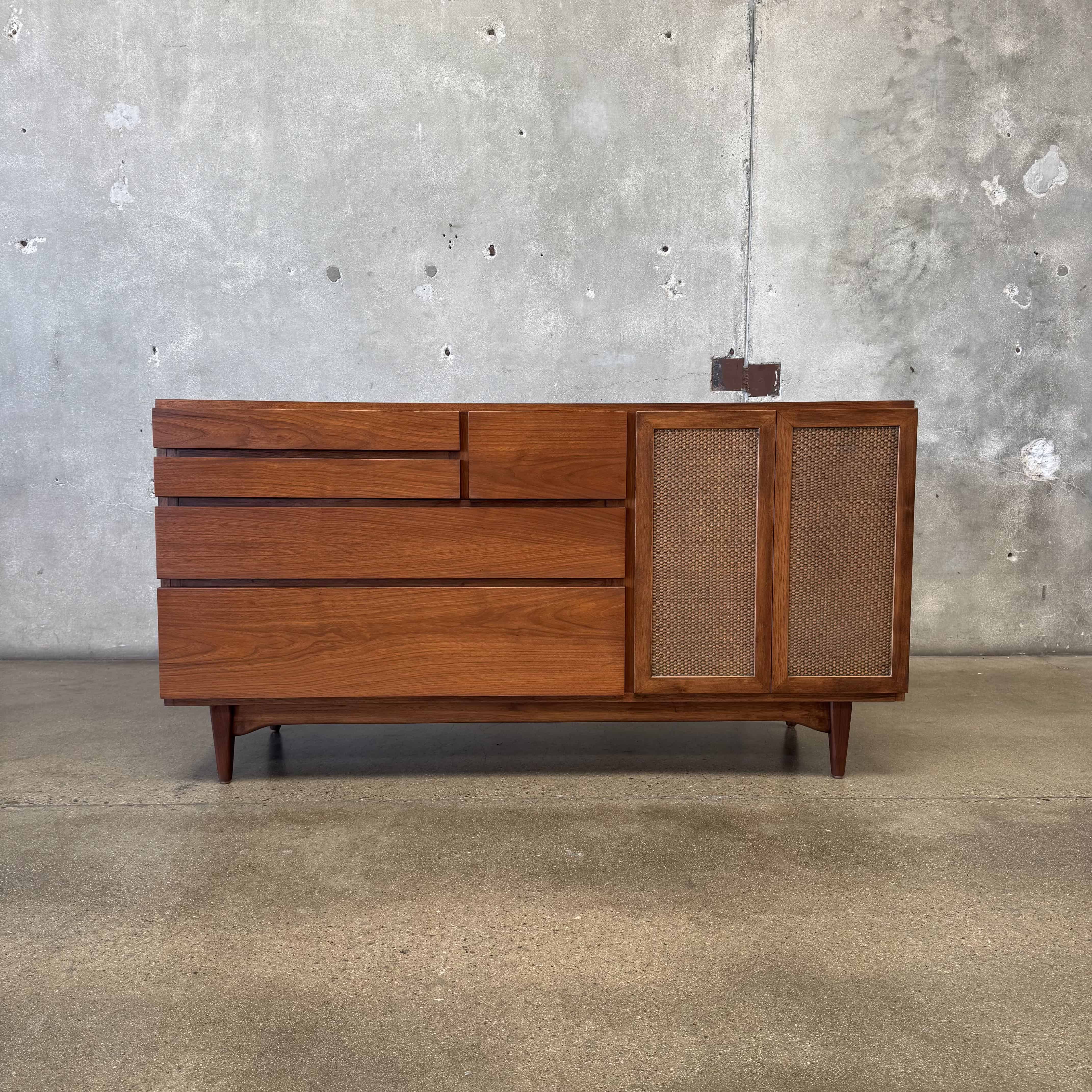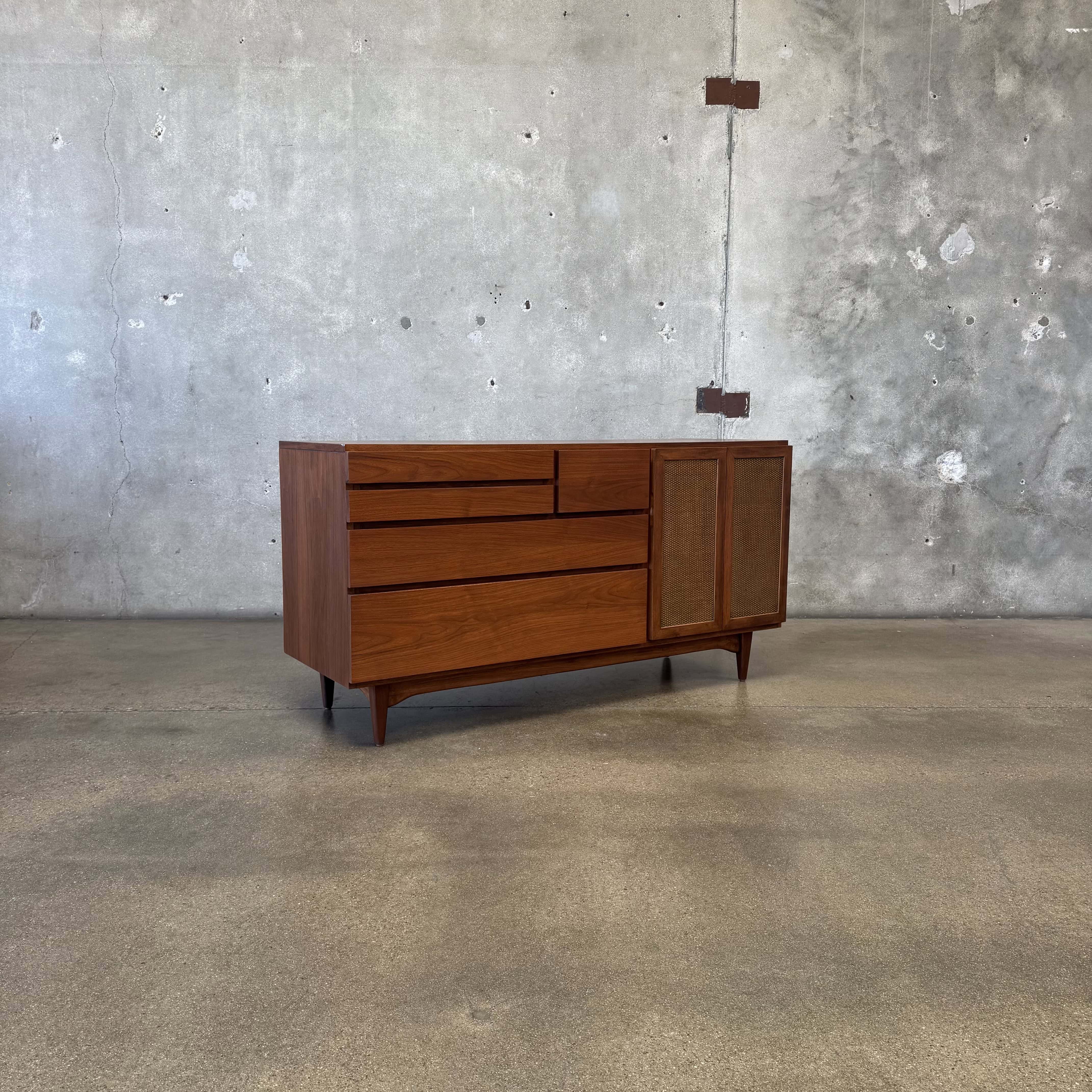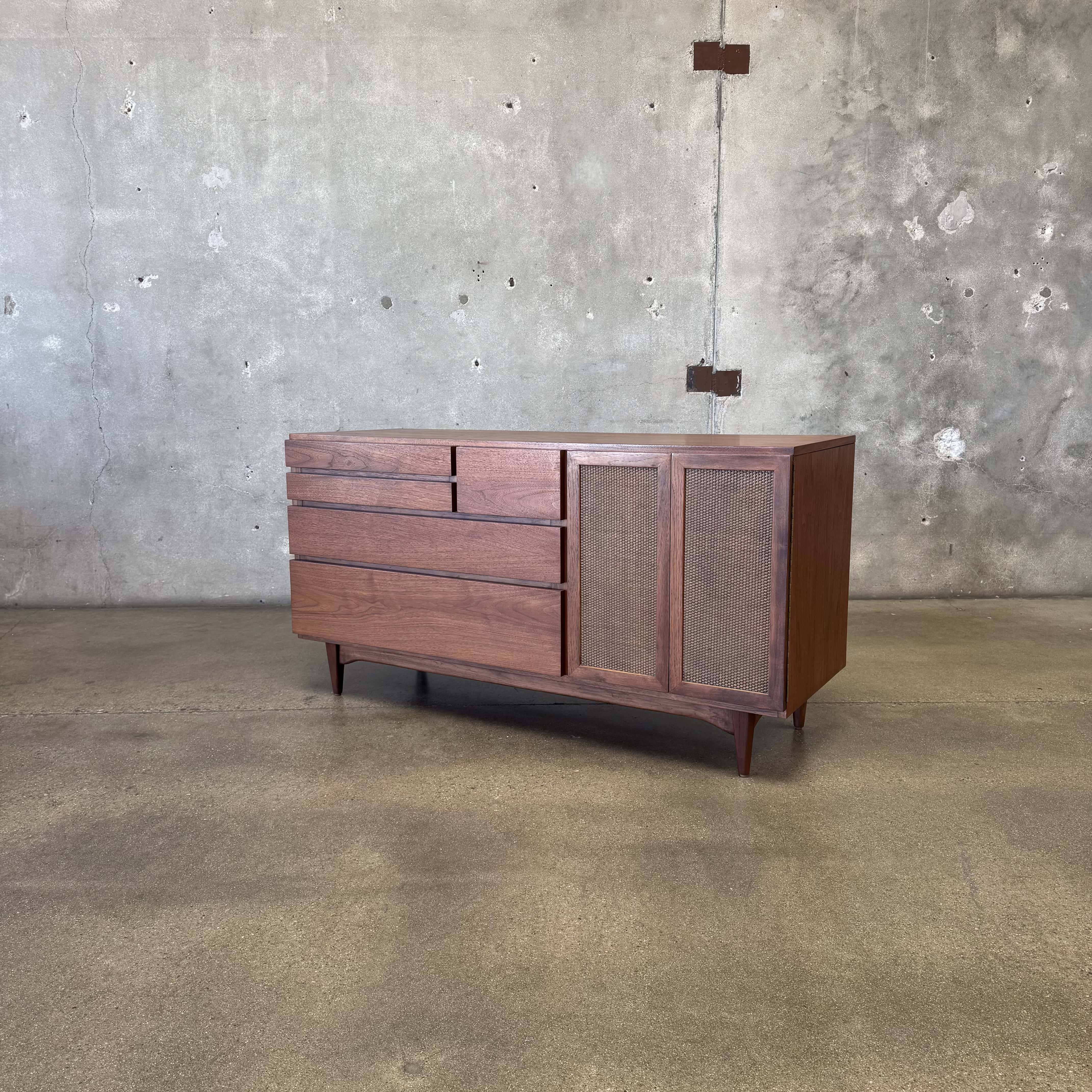 Mid Century Modern Walnut & Cane Credenza