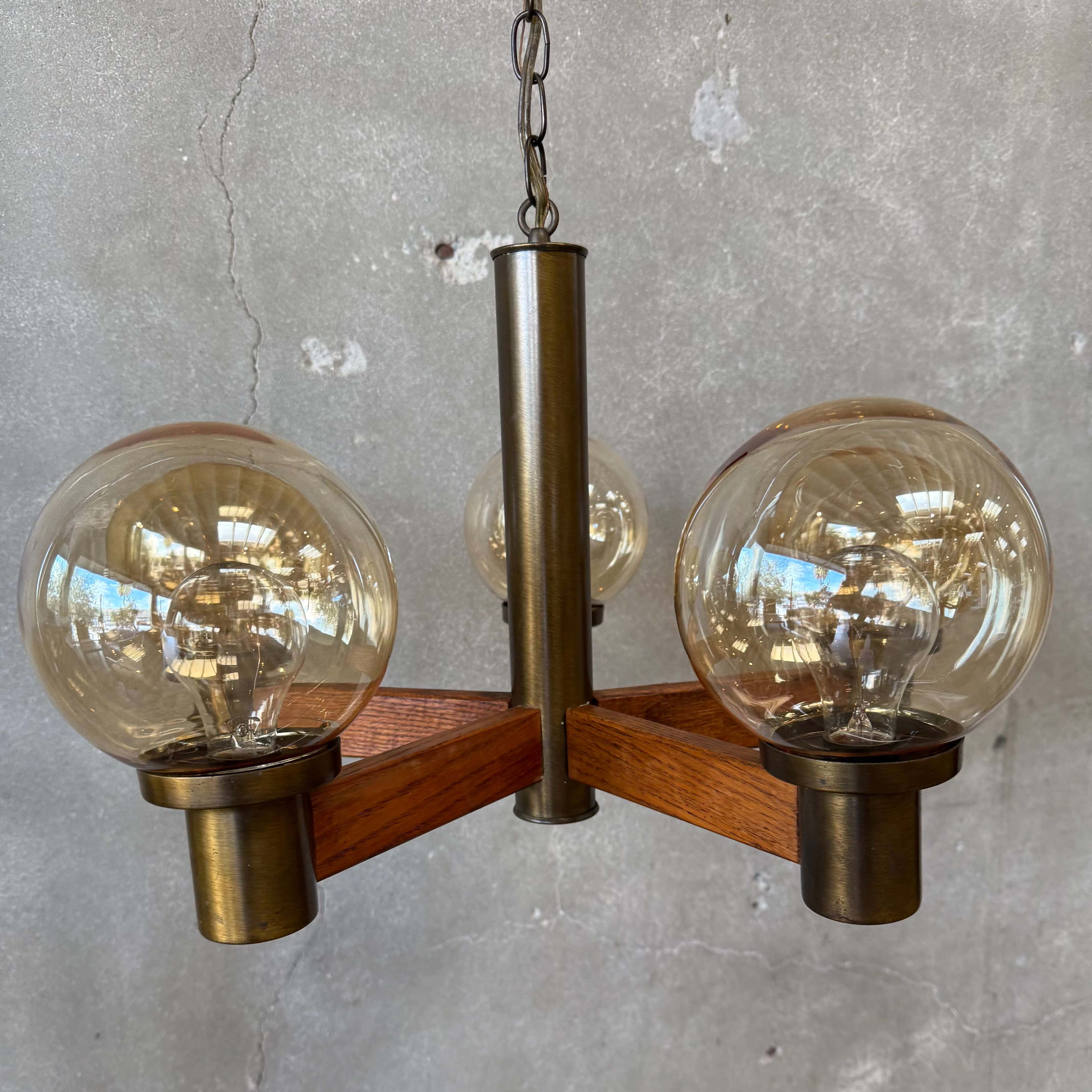 Mid Century Modern Five (5) Light Smoked Glass Ball Chandelier