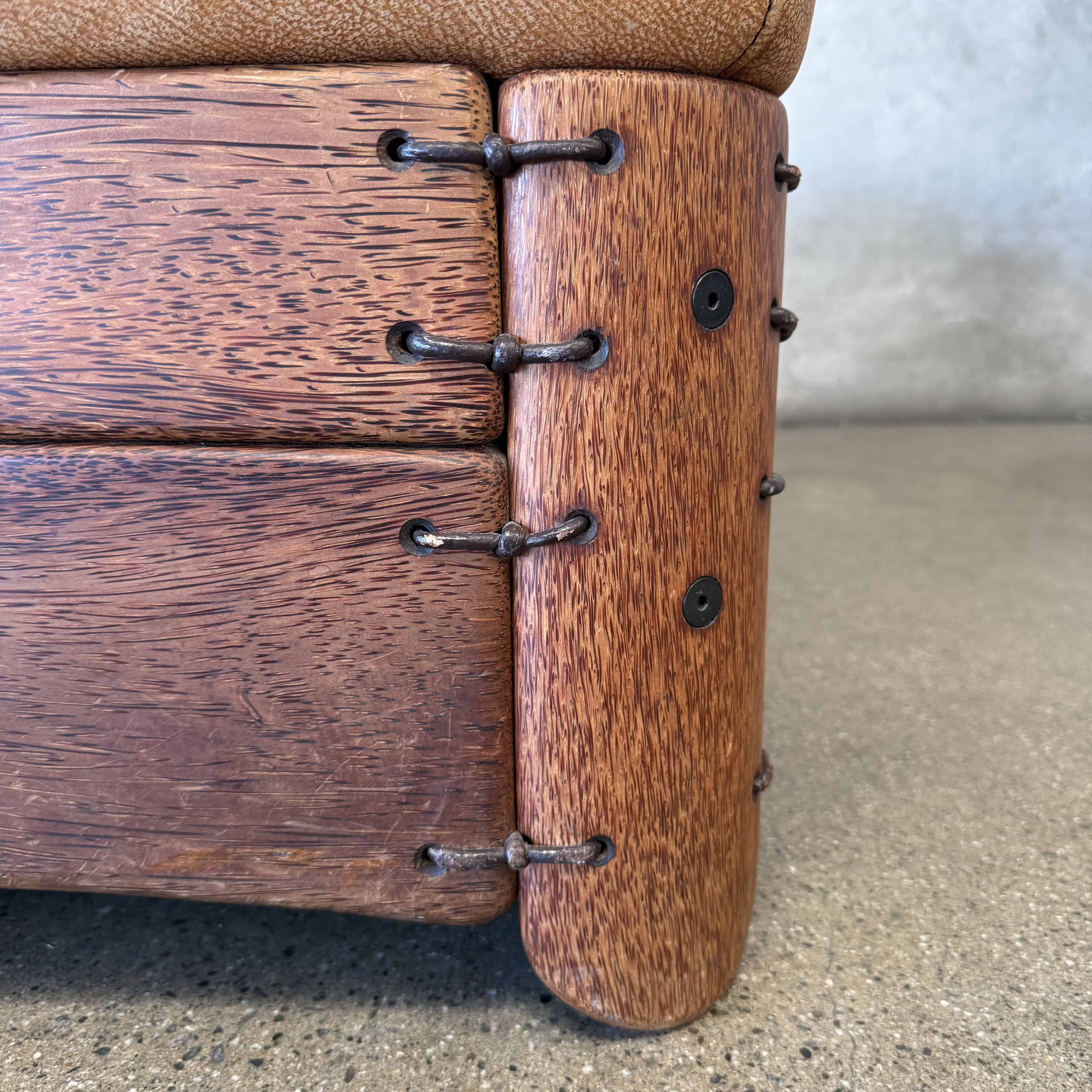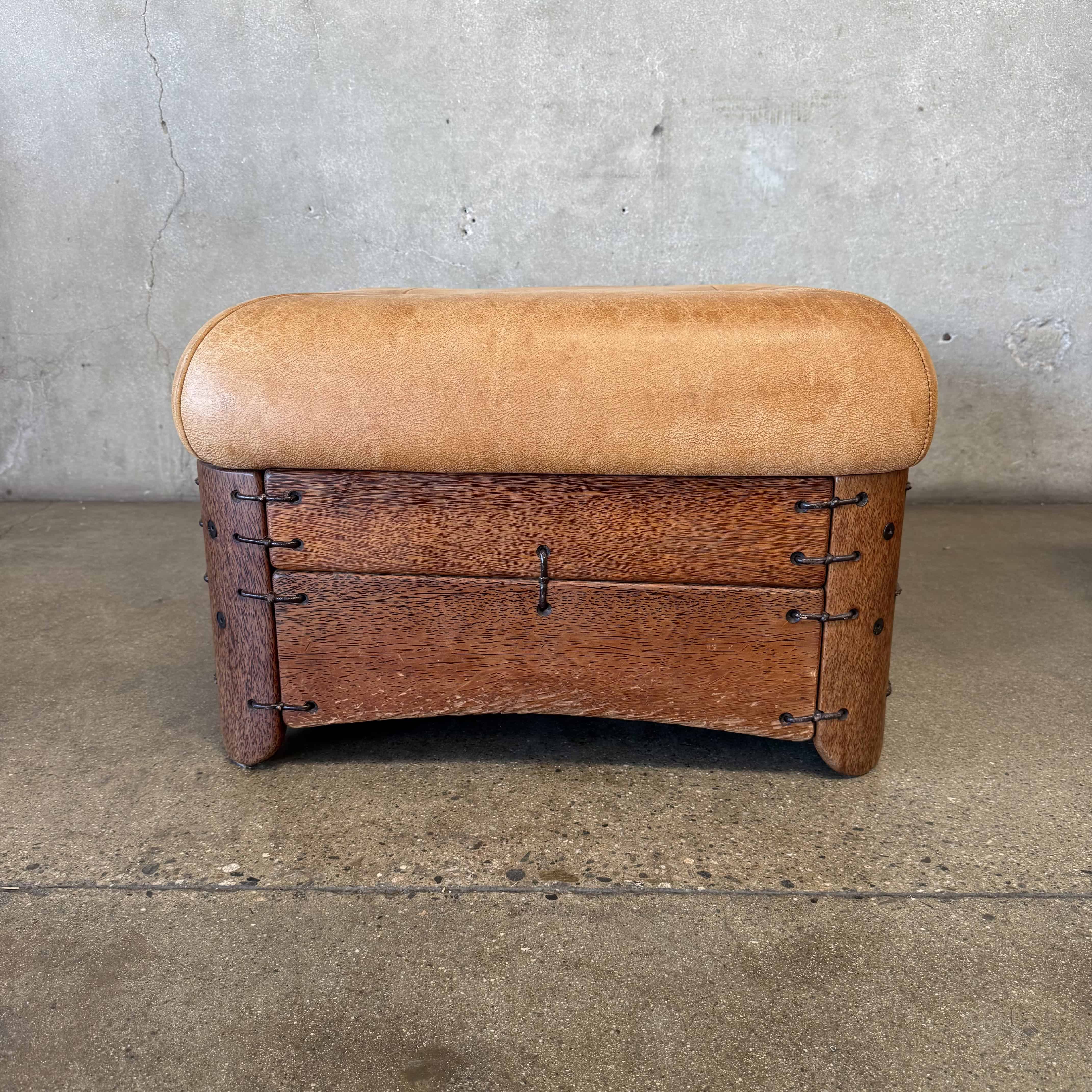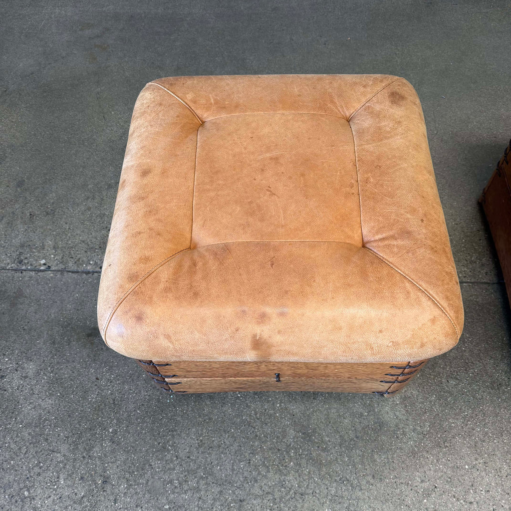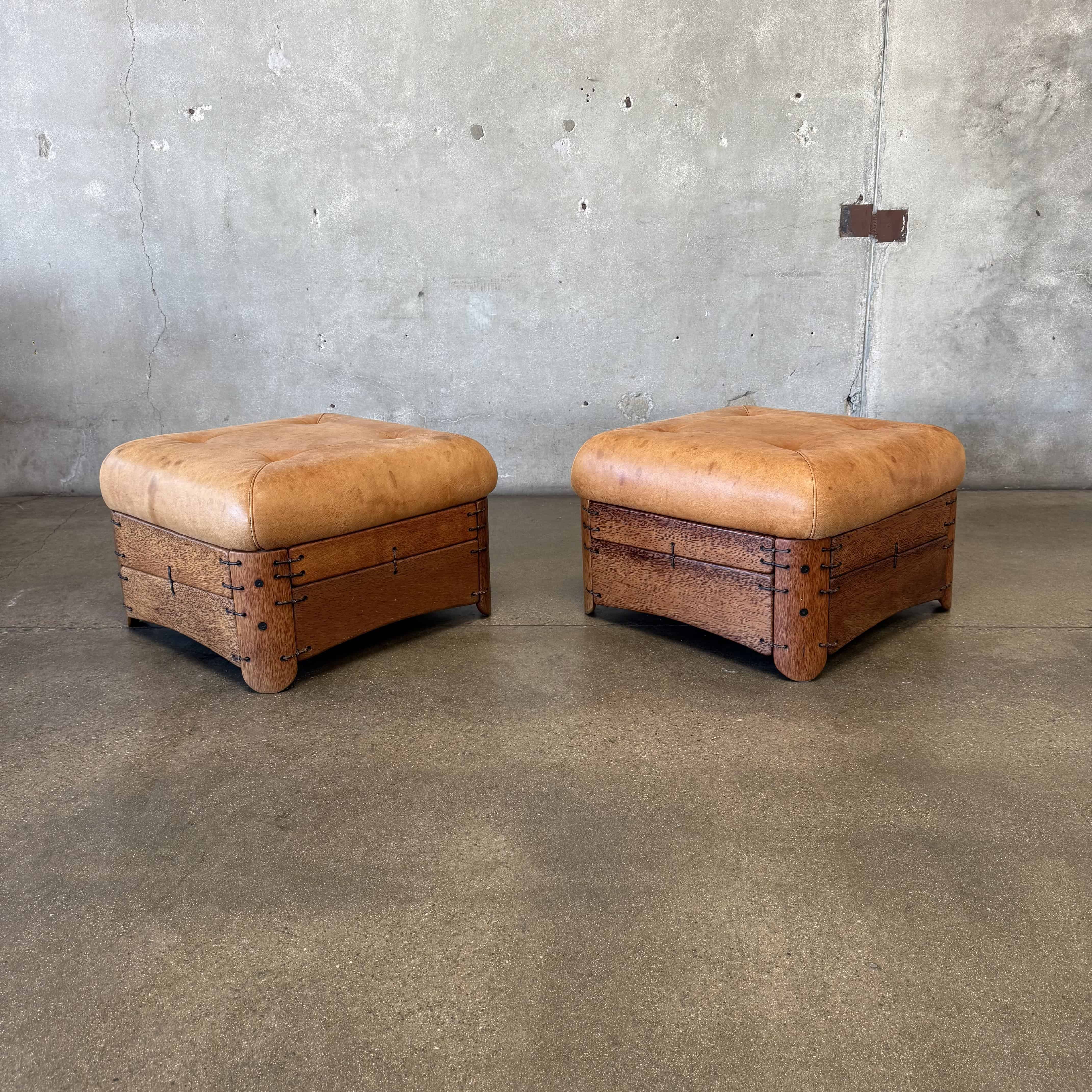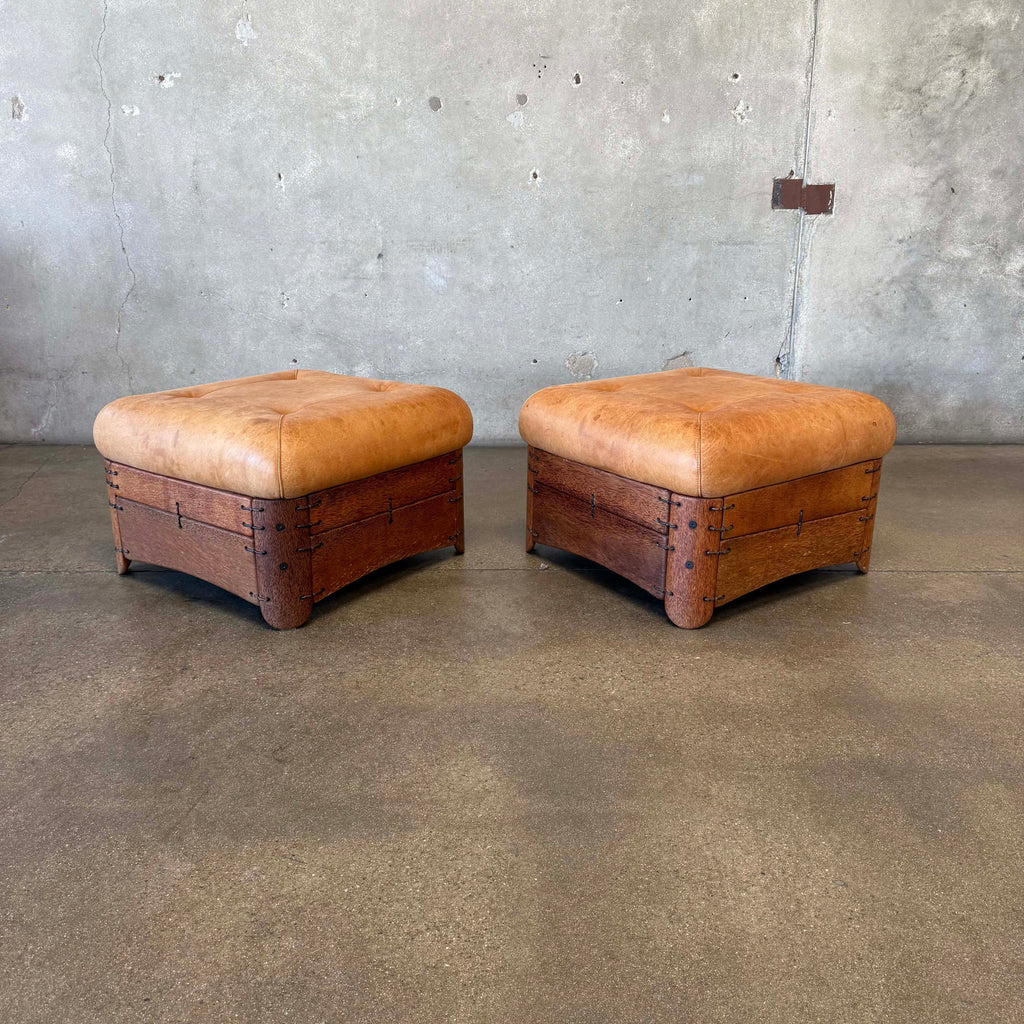 Pair of Leather & Palmwood Ottomans by Pacific Green