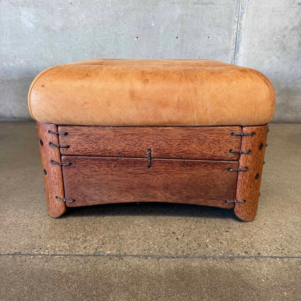 Pair of Leather & Palmwood Ottomans by Pacific Green - HOLD